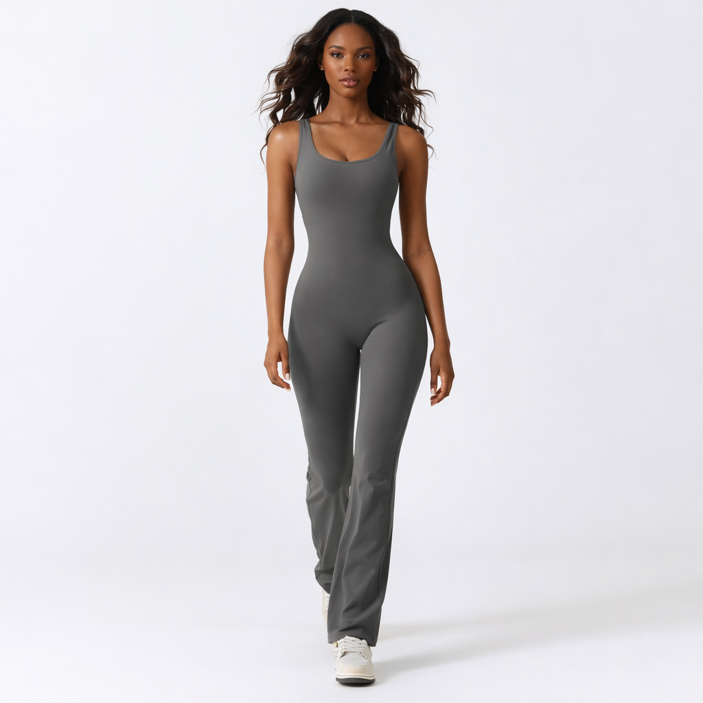 Ærmeløs sports jumpsuit med kropsnær pasform og let flare-ben