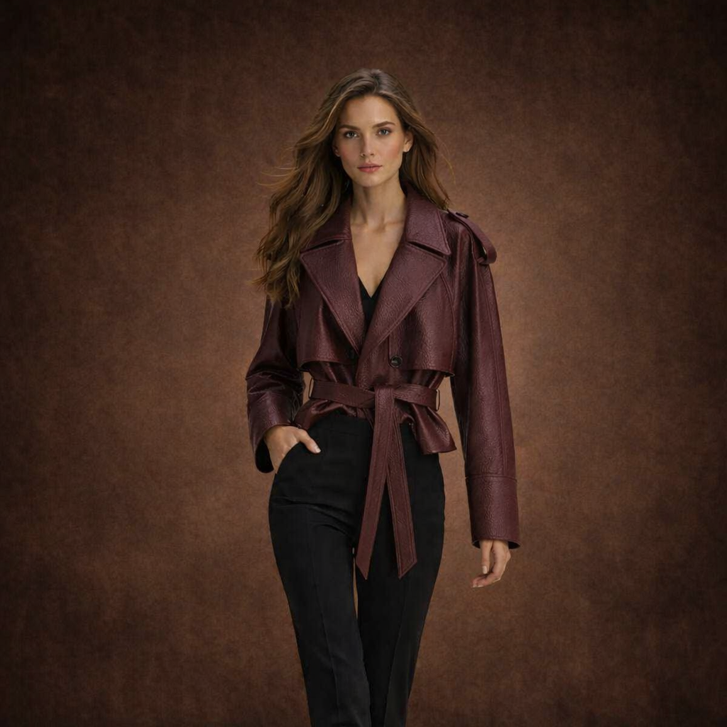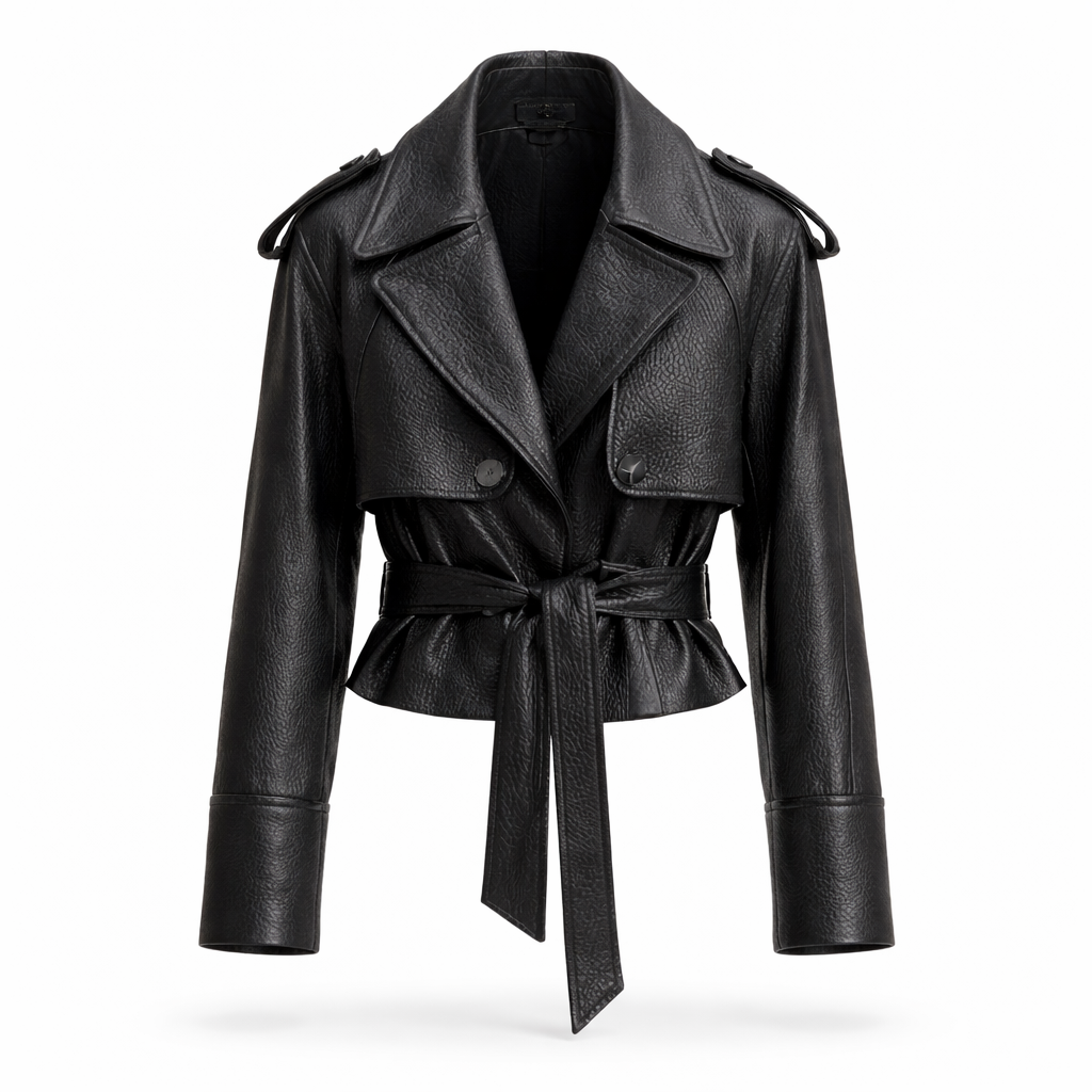Denne eksklusive læderjakke kombinerer et markant udtryk med tidløs elegance og raffineret komfort. Det strukturerede snit og det justerbare bælte skaber en flatterende silhuet, der egner sig perfekt til både hverdagsbrug og mere sofistikerede anledninger.
