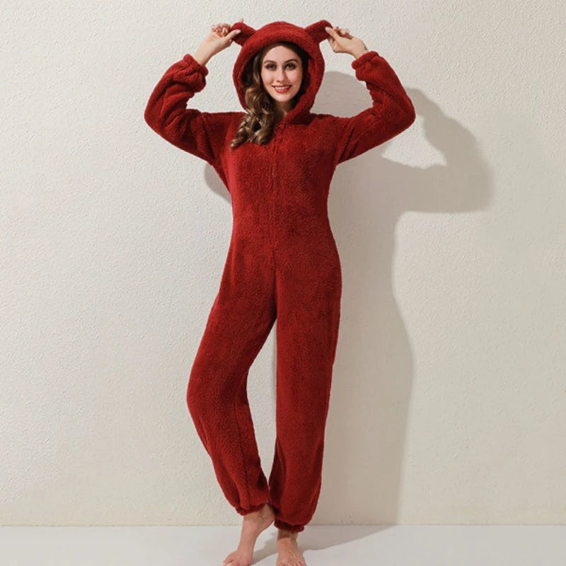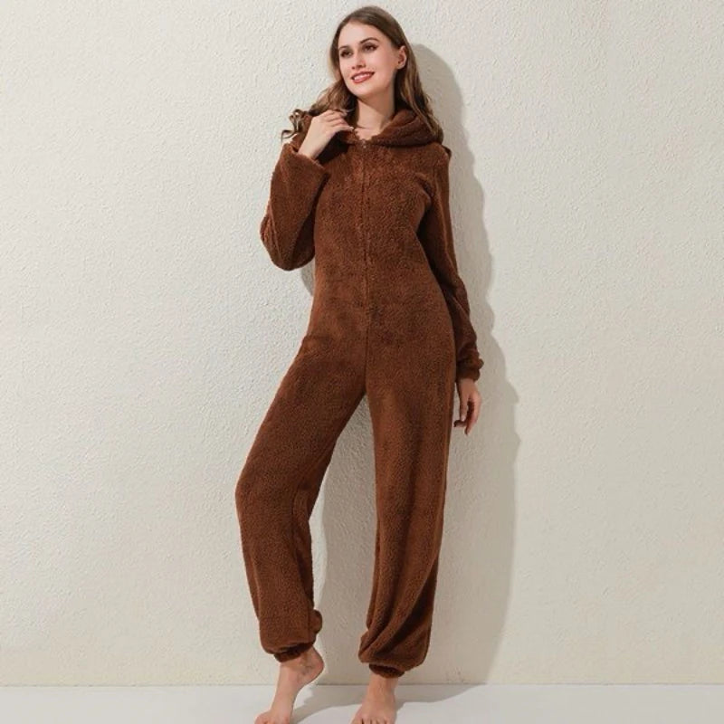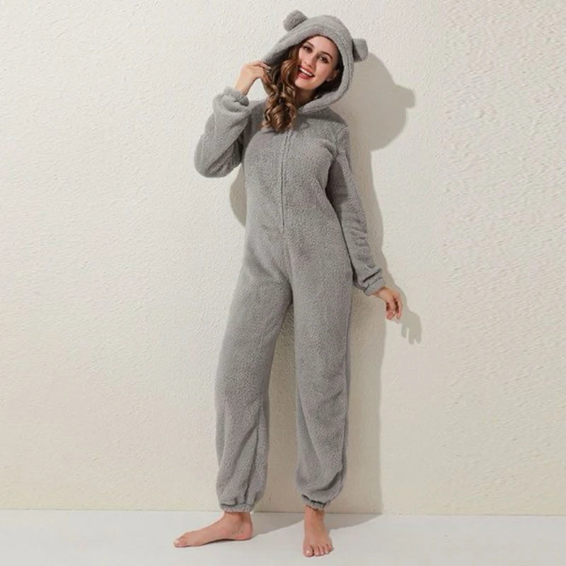Blød Fleece-heldragt Med Hætte Til Kvinder