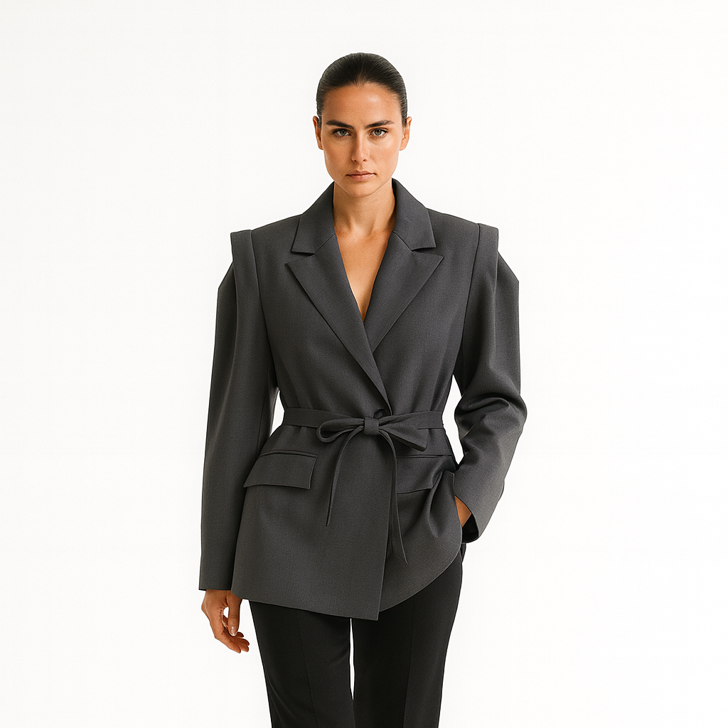 Chic blazer med bælte og afslappet pasform til kvinder – perfekt til kontor og aftenbrug