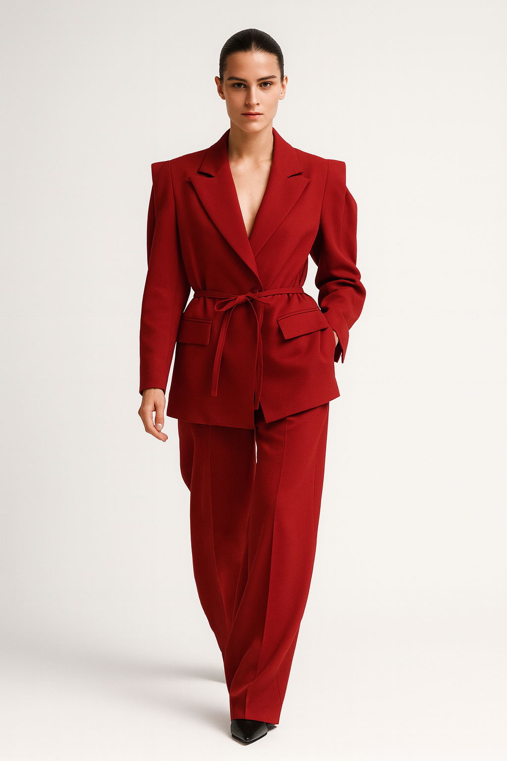 Oplev moderne elegance med denne stilfulde blazer, der kombinerer et klassisk snit med feminine detaljer. Den lette, løstsiddende pasform og bælte i taljen skaber et flatterende udtryk, der fungerer lige så godt på kontoret som til aftenarrangementer.