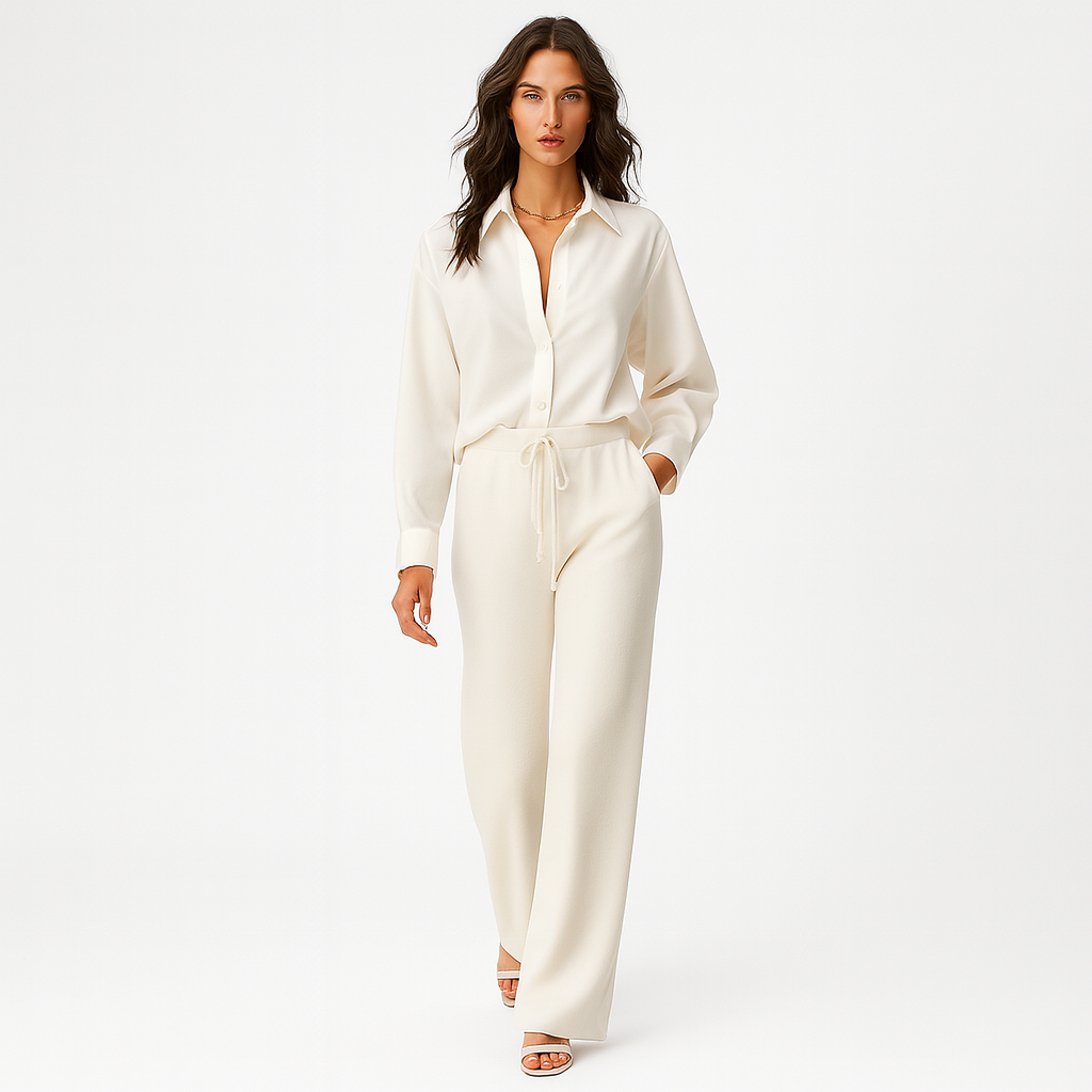 Stylingtip: Kombinér med en matchende cardigan for et harmonisk loungesæt, eller bær med en let skjorte og loafers for et ubesværet hverdagslook.