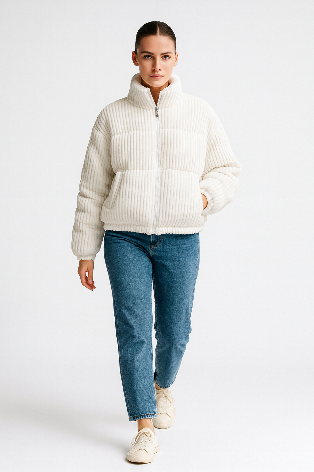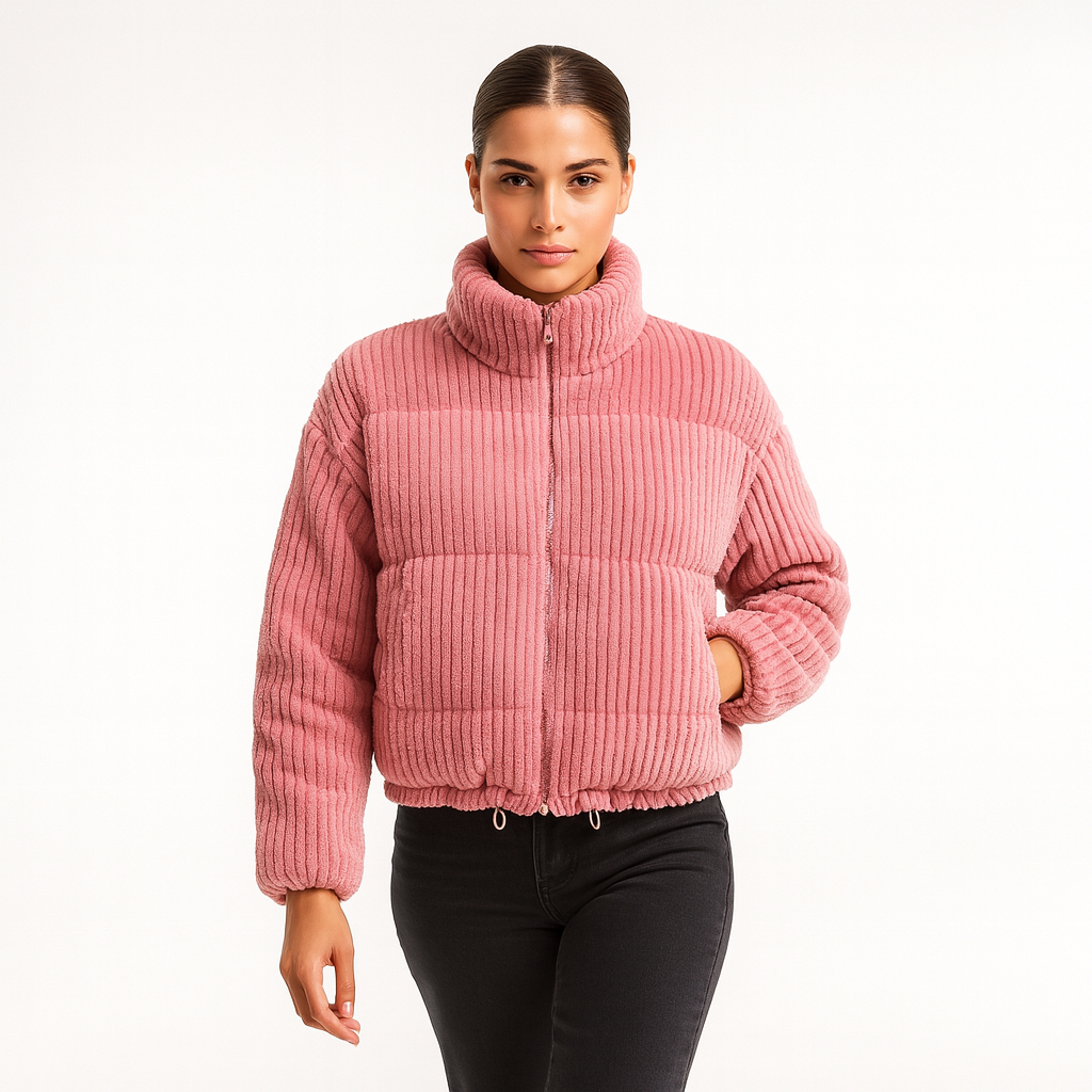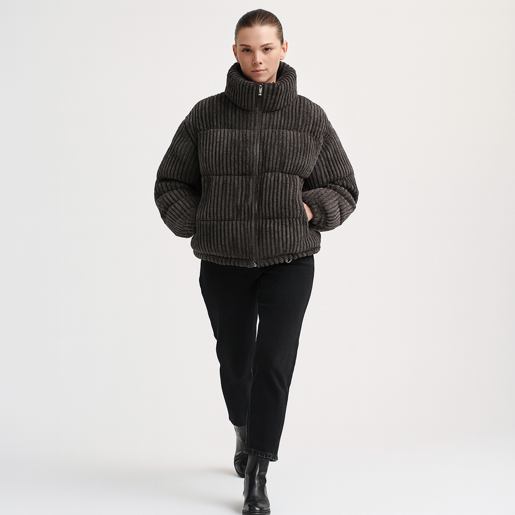 Dame Dunjakke med Ribstruktur | Lynlås foran | Let, Varm & Moderne Silhuet