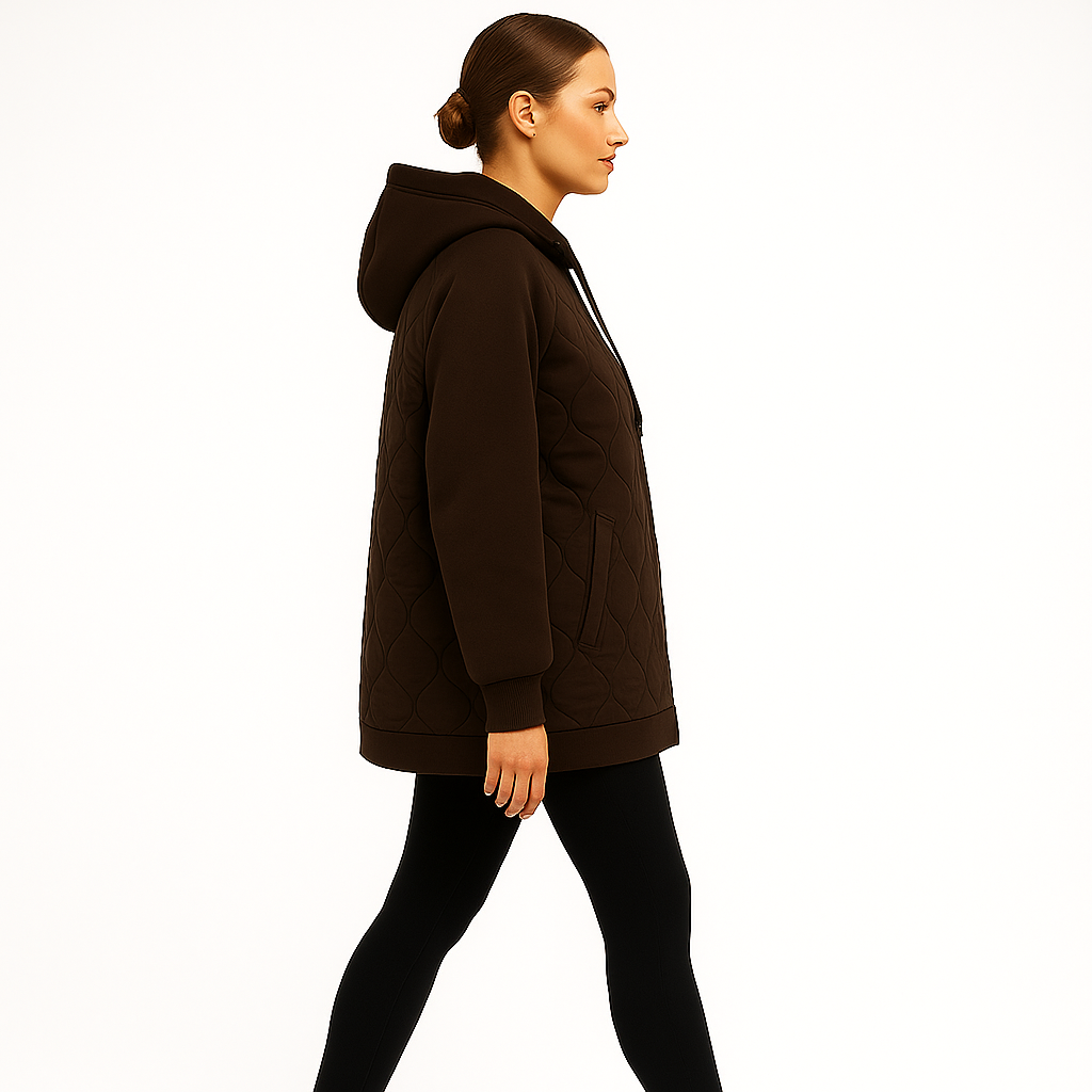 Dame Jakke med Hætte | Quiltet og Polstret Design | Let og Varm