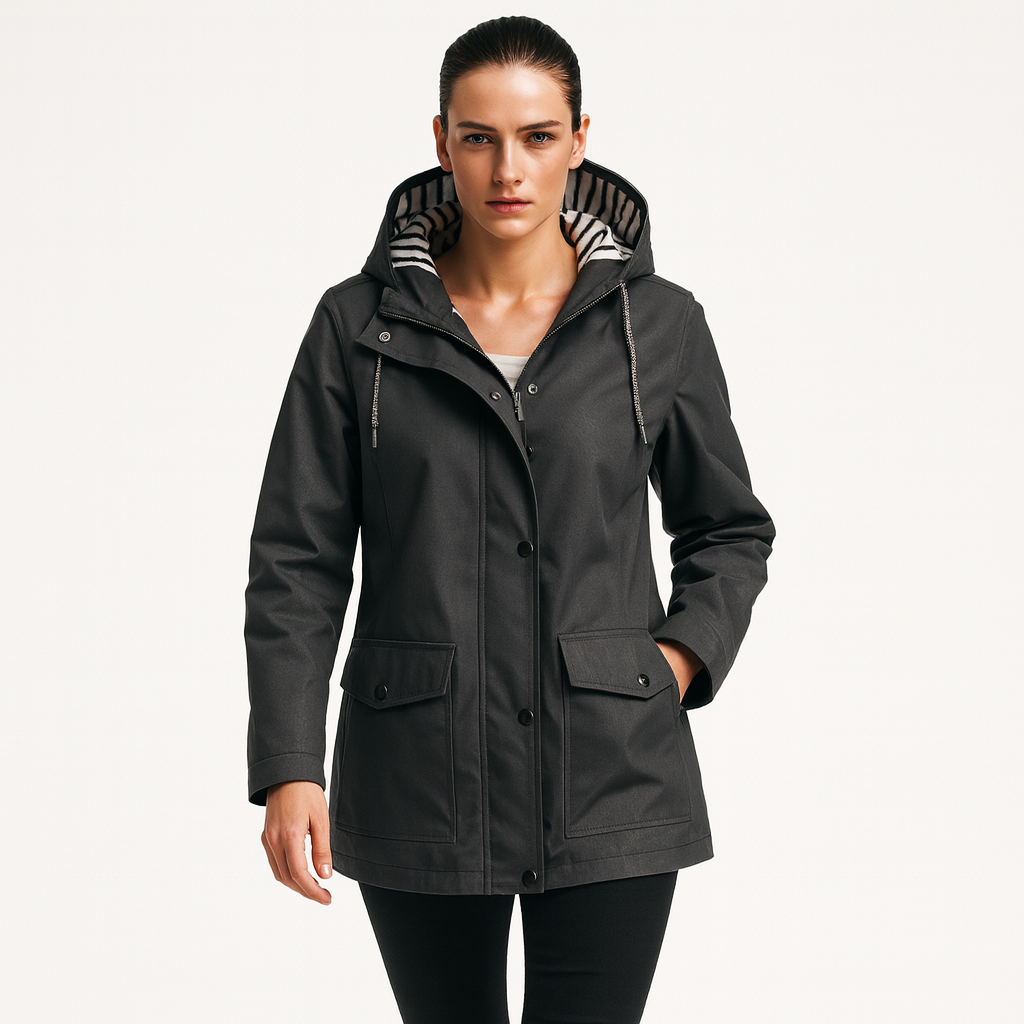 Dame jakke til udendørs brug | Vandafvisende og åndbar | Lang hættejakke i løs pasform