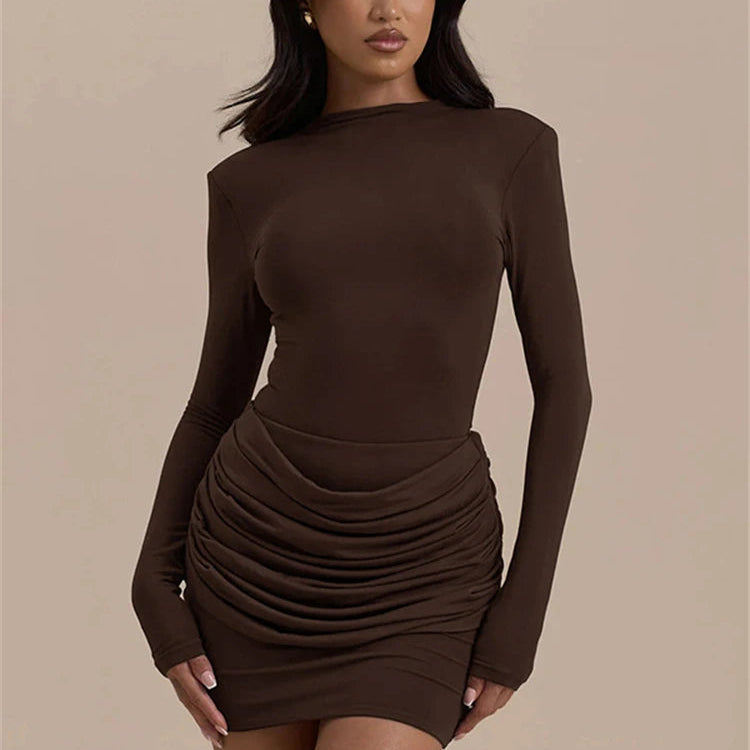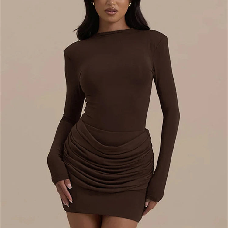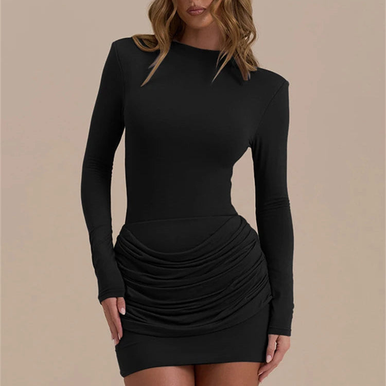 Dame kort kjole med lange ærmer og rund hals | Elegant og komfortabel til fest og hverdag