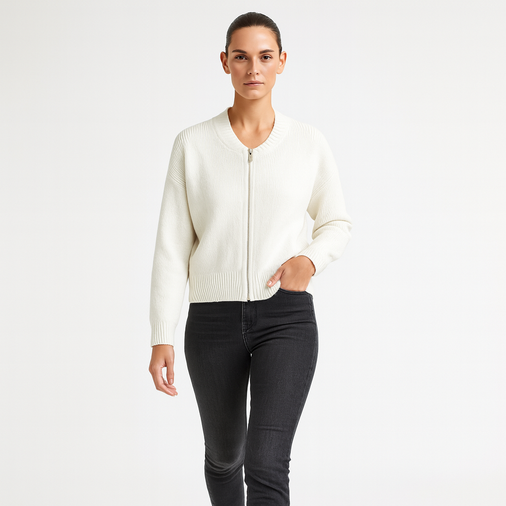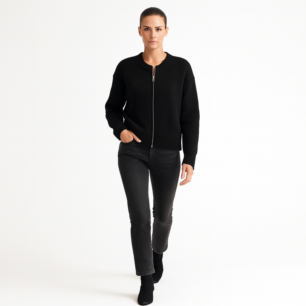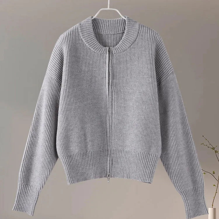 Dame Strikcardigan med Lynlås | Klassisk Ribstruktur | Blød Komfort til Efterår & Forår