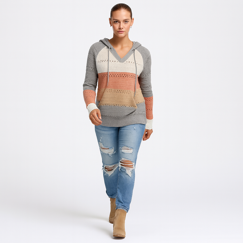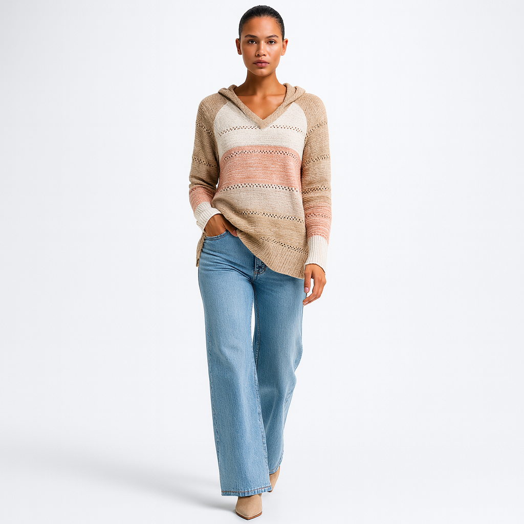 Dame Striktrøje med V-Hals | Løs Pasform | Åndbar Komfort | Til Alle Sæsoner