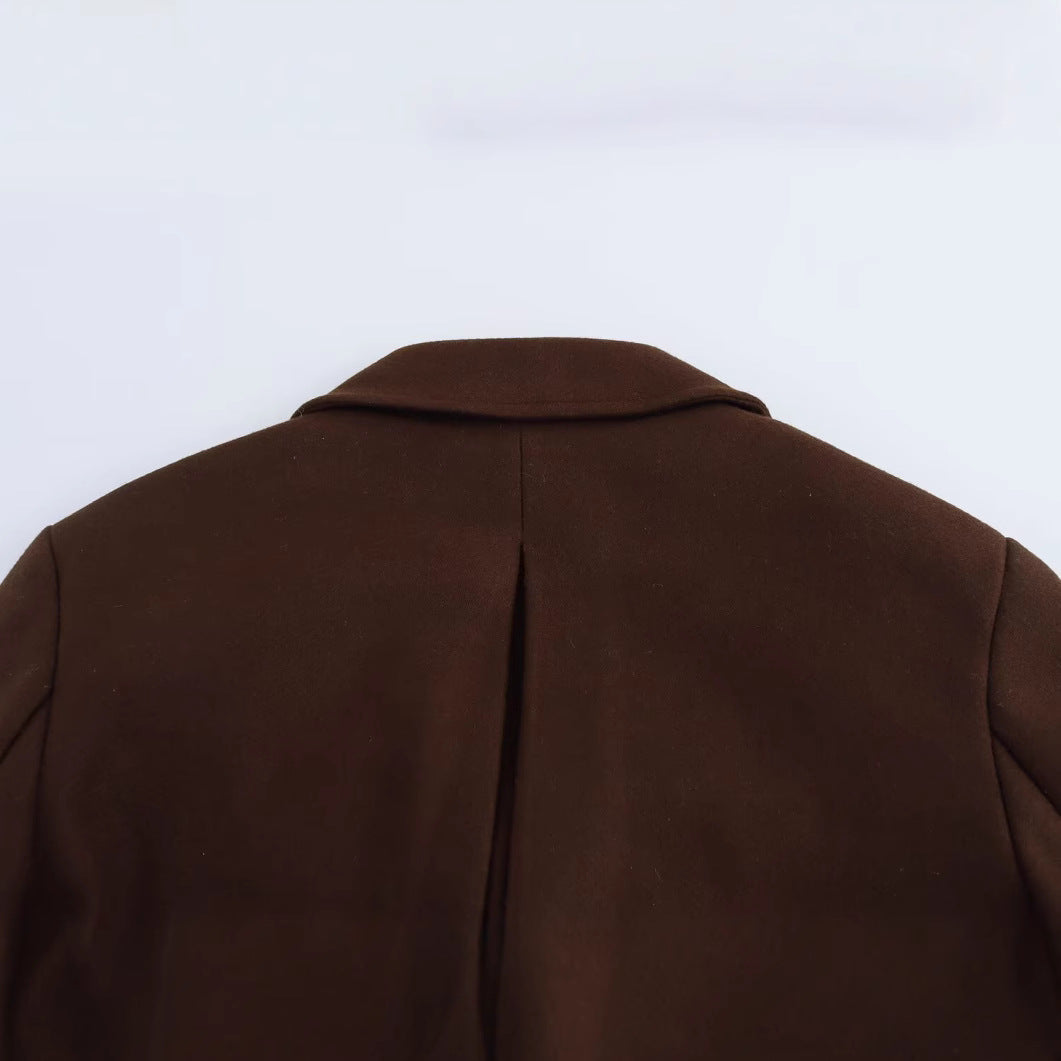 Dame Uldfrakke i Patchworkdesign | Brun | Elegant & Varm til Efterår & Vinter