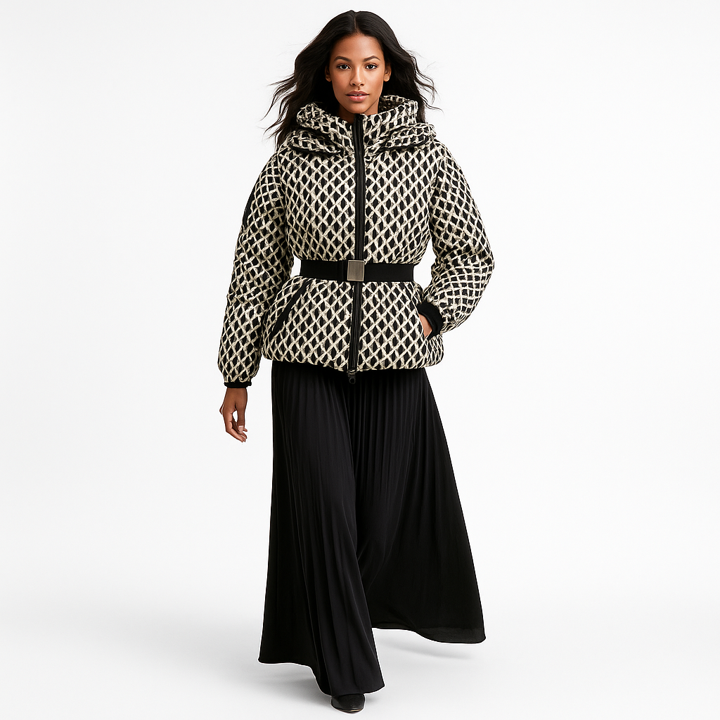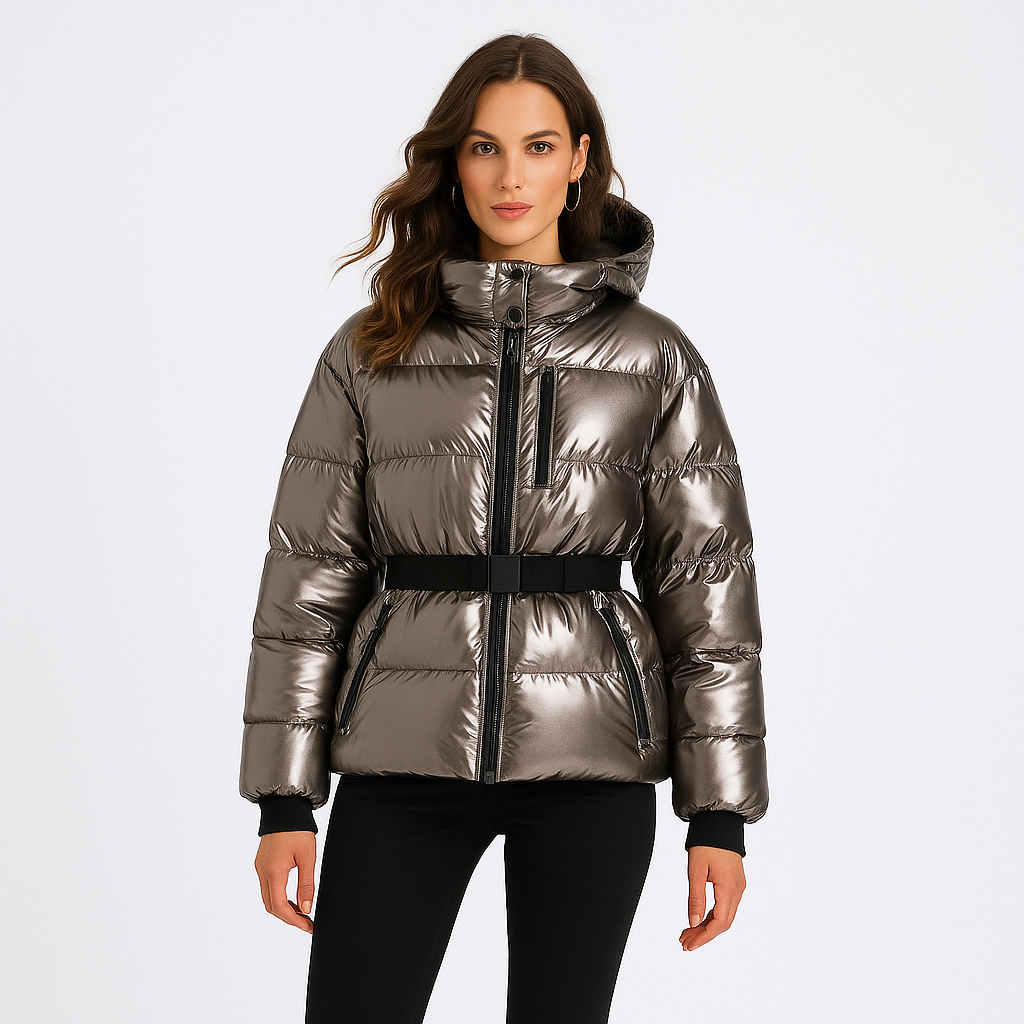 Denne moderne pufferjakke kombinerer funktionalitet og stil på elegant vis. Med sin justerbare talje, høje krave og varme polstring holder den dig både chic og komfortabel gennem kolde vinterdage.