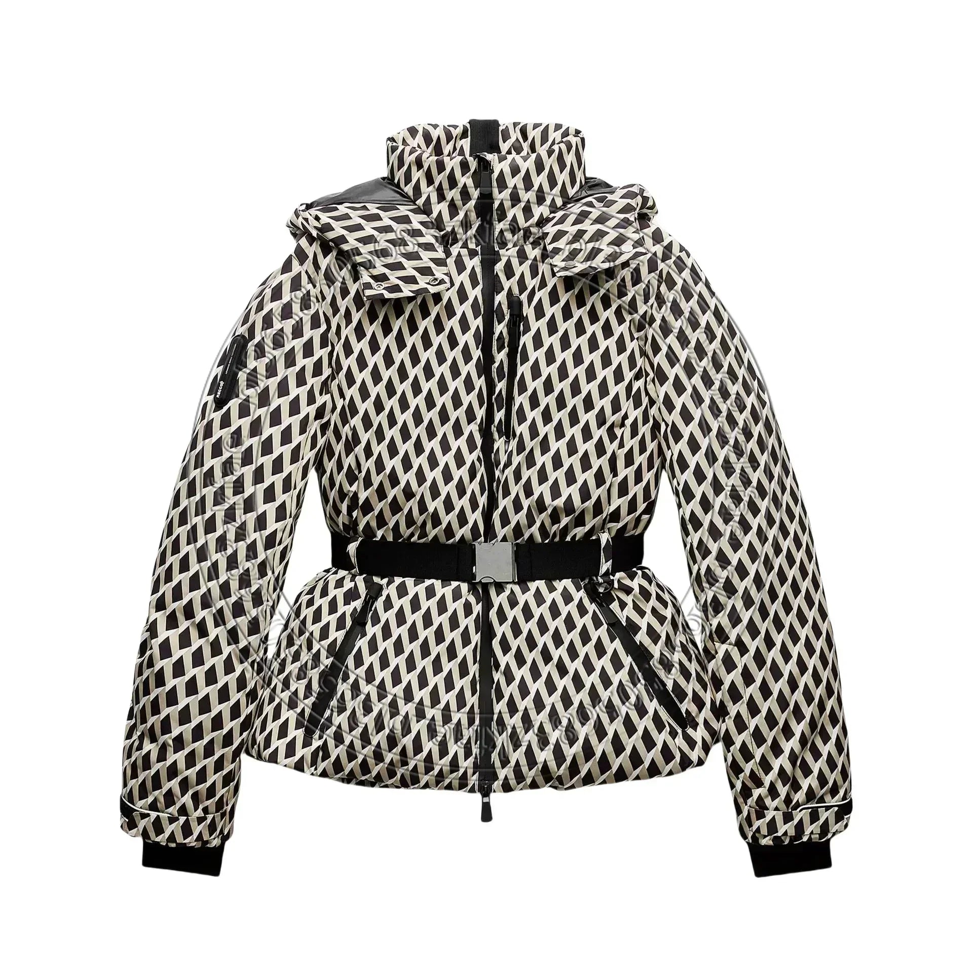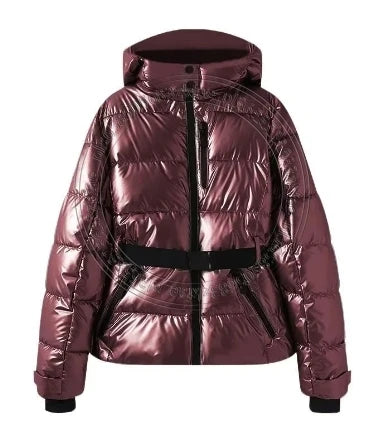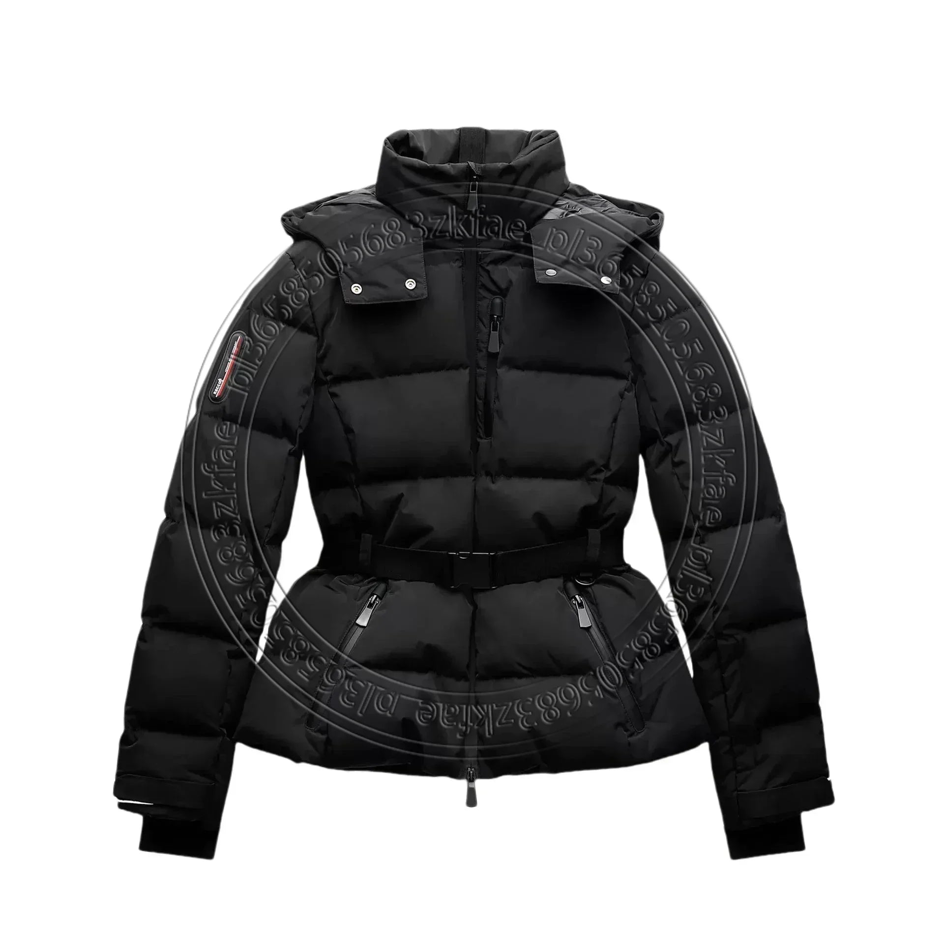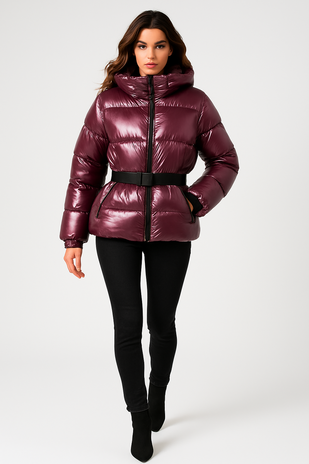 Dame vinterjakke med hætte | Foret pufferdesign med bælte | Varm og vindtæt