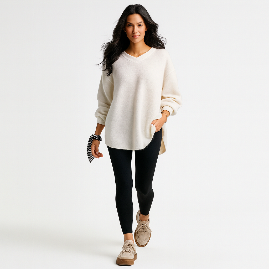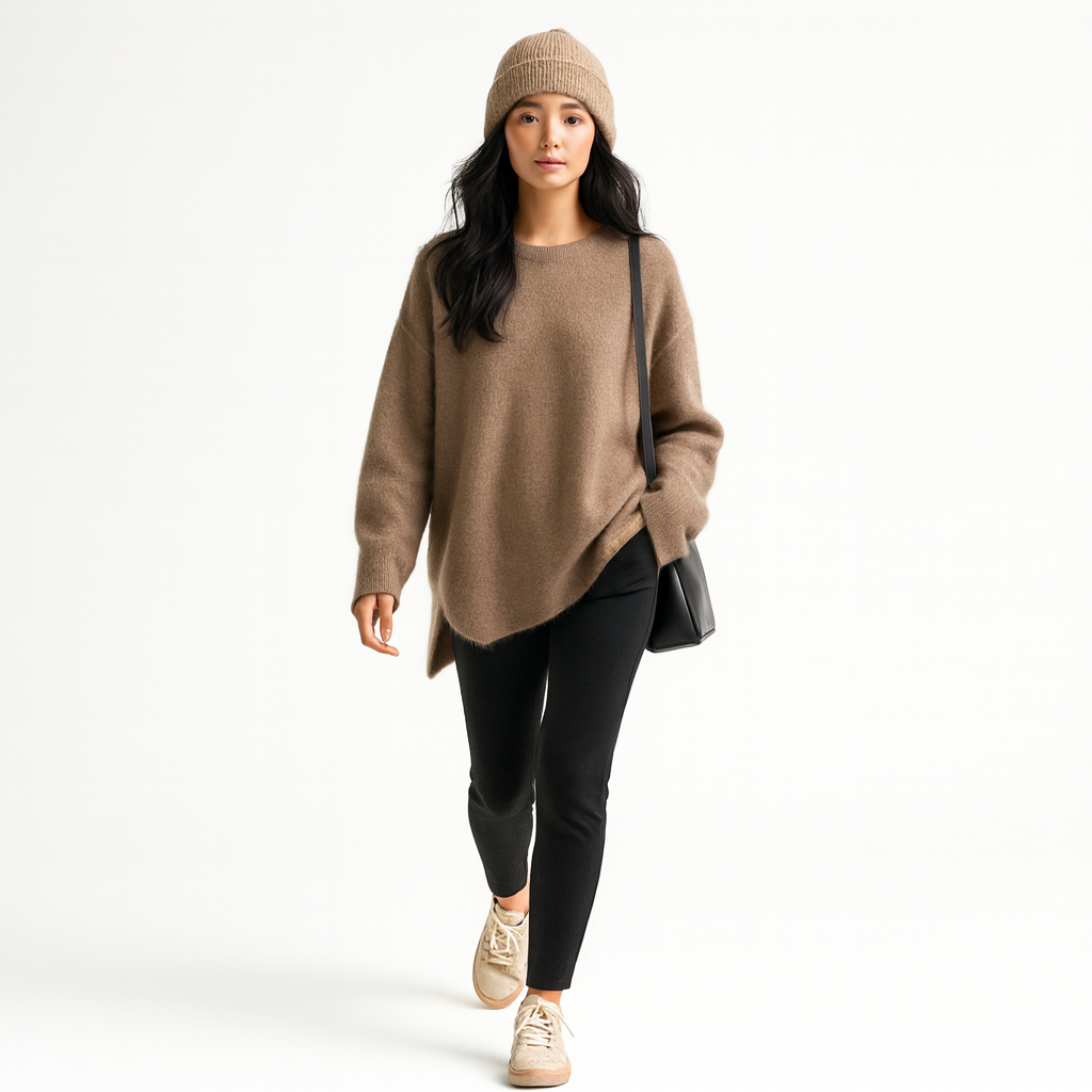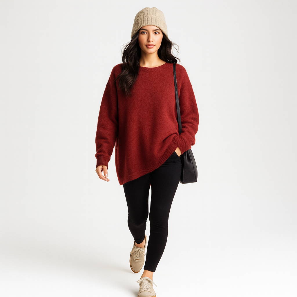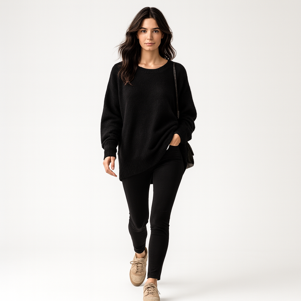 Dame vinterpullover | Løs pasform med sideslids | Blød og varm strik til hverdag
