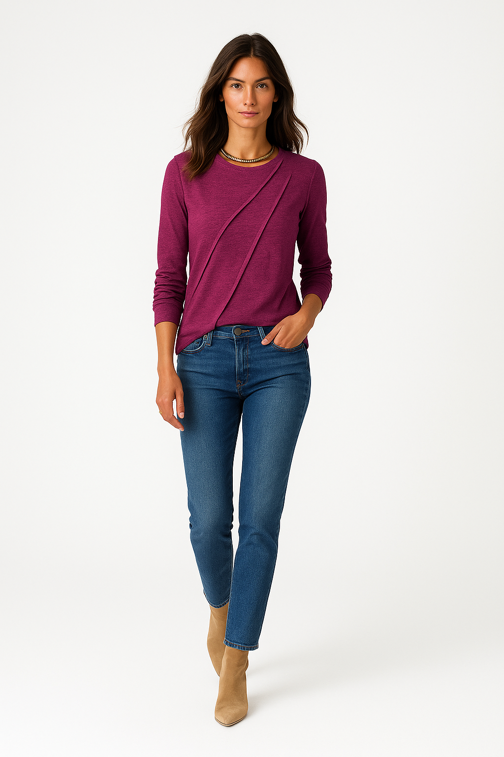✓ Tidløst design: Ensfarvet look med diskrete folder giver et sofistikeret udtryk.