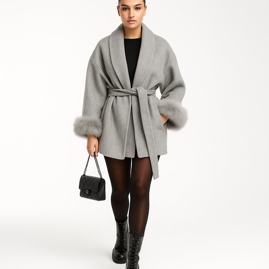 – Materiale: Kvalitetsblanding med pluchet kunstpelsdetalje på ærmer