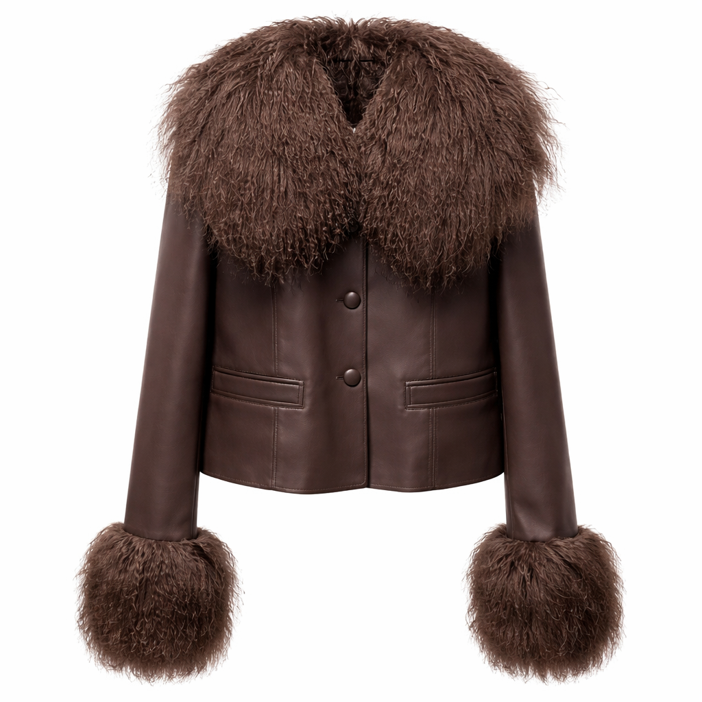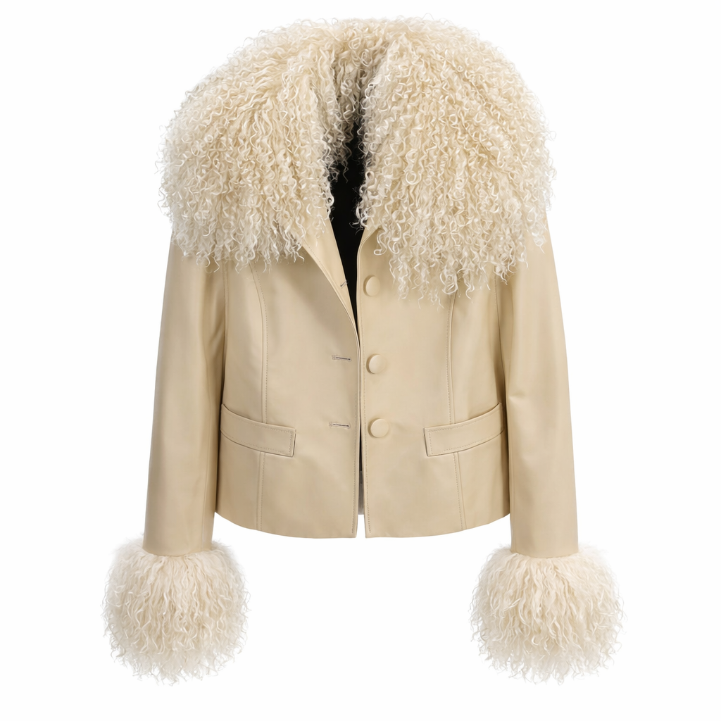 – Materiale: Ægte sheepskin-læder med krave og manchetter i ægte mongolsk fårepels