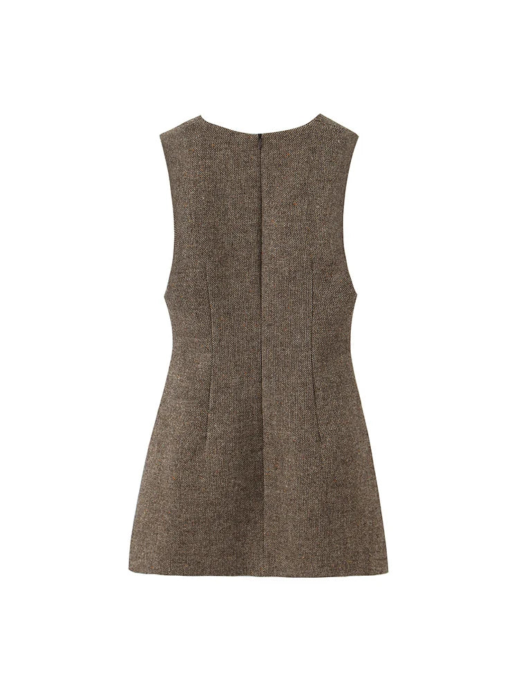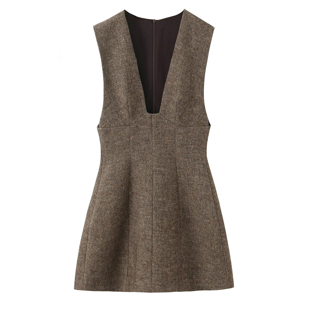 Elegant ærmeløs minikjole til kvinder med dyb V-udskæring og struktureret snit