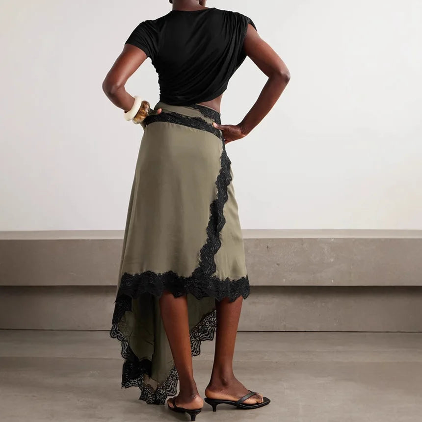 Elegant asymmetrisk slå-om nederdel til kvinder | Blonderkant