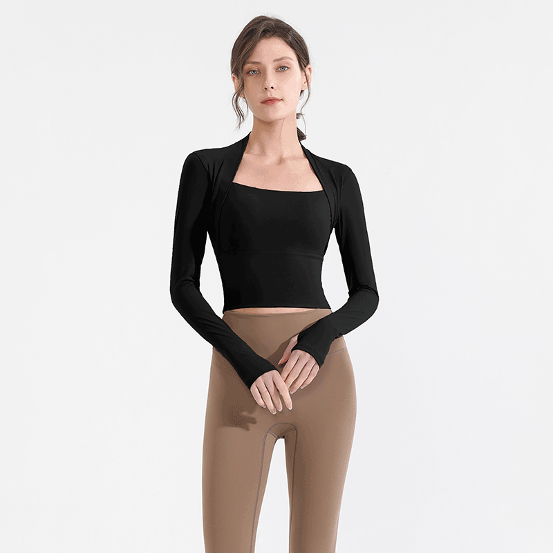 Elegant cropped yoga top med lange ærmer og indbygget støtte