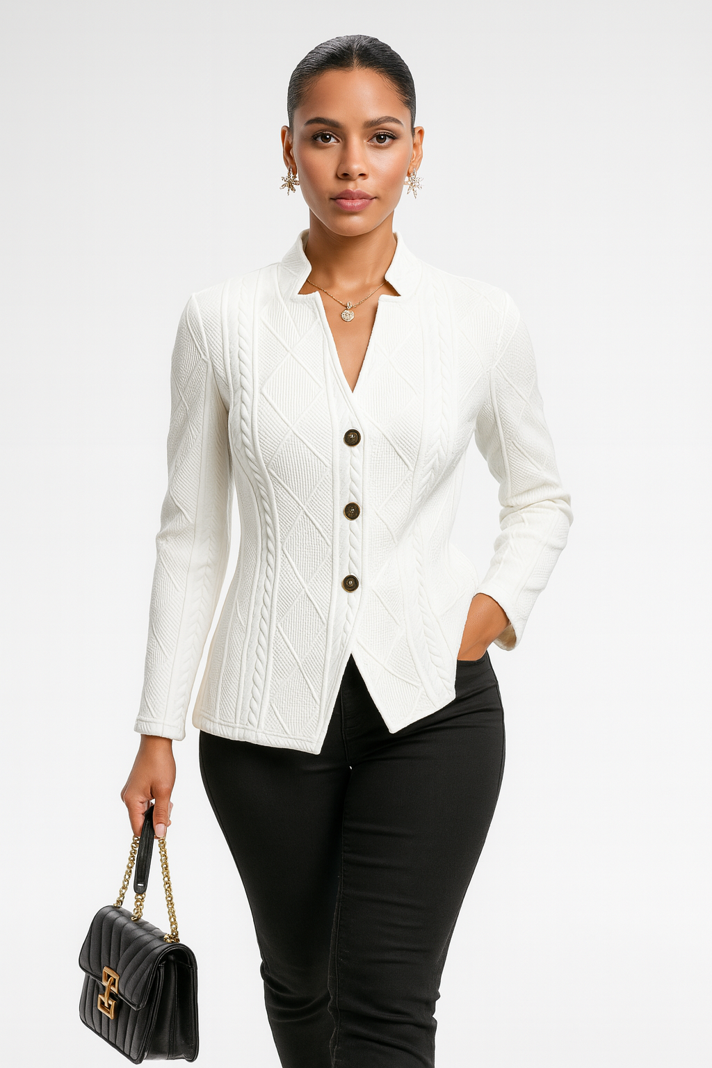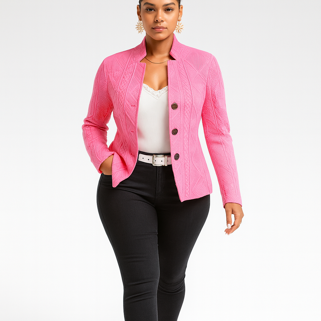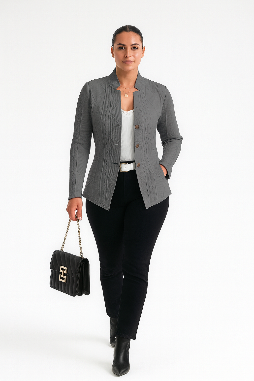 Elegant figursyet blazer til kvinder i strikket kvalitet med knaplukning – ideel til efterår og vinter
