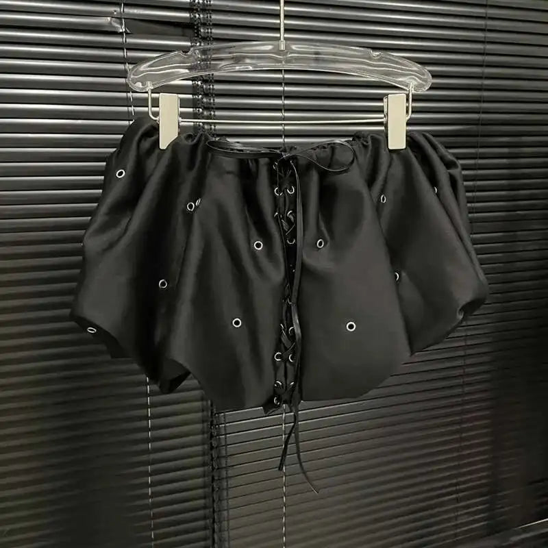 Elegant Fluffy Mininederdel Med Snøre-Detaljer