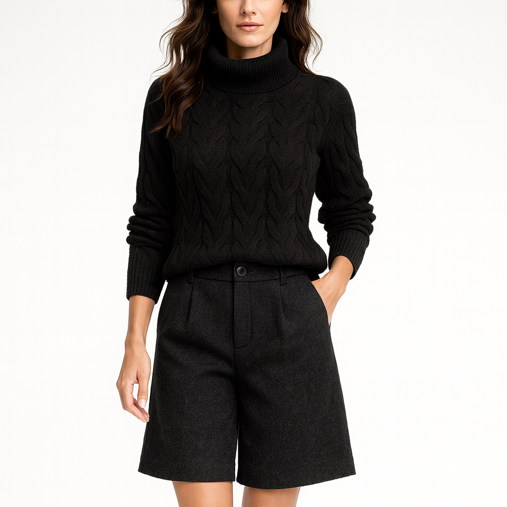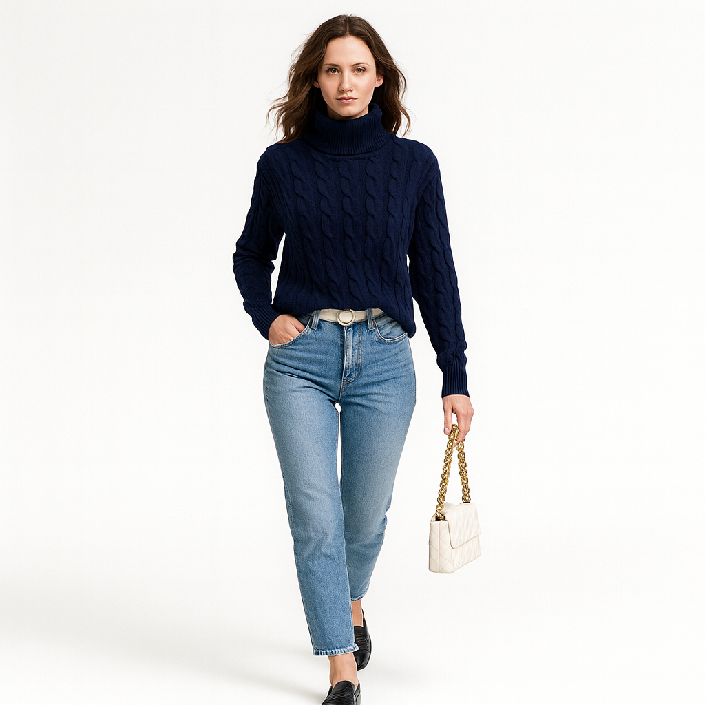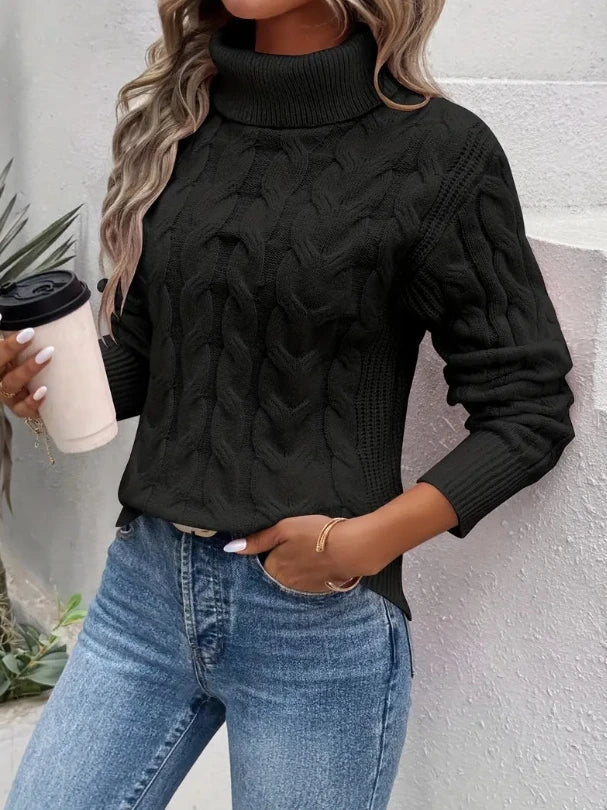 Elegant Kabelstrik-rullekrave Til Kvinder