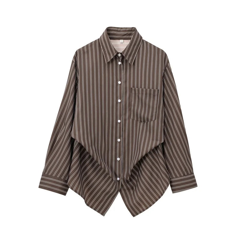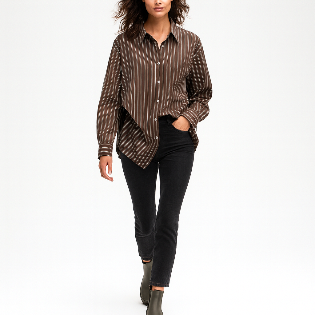 Elegant langærmet skjorte med stribedetaljer og moderne silhouet