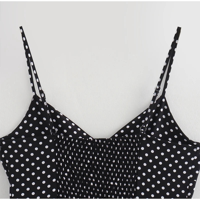 Elegant maxikjole med prikket mønster | Asymmetrisk udskæring og slankt snit