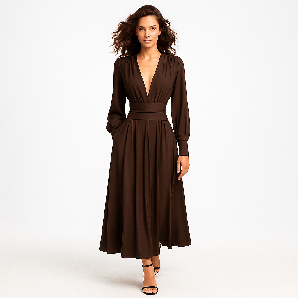 Elegant maxikjole til kvinder | Dyb V-udskæring | Markeret talje og slank silhuet