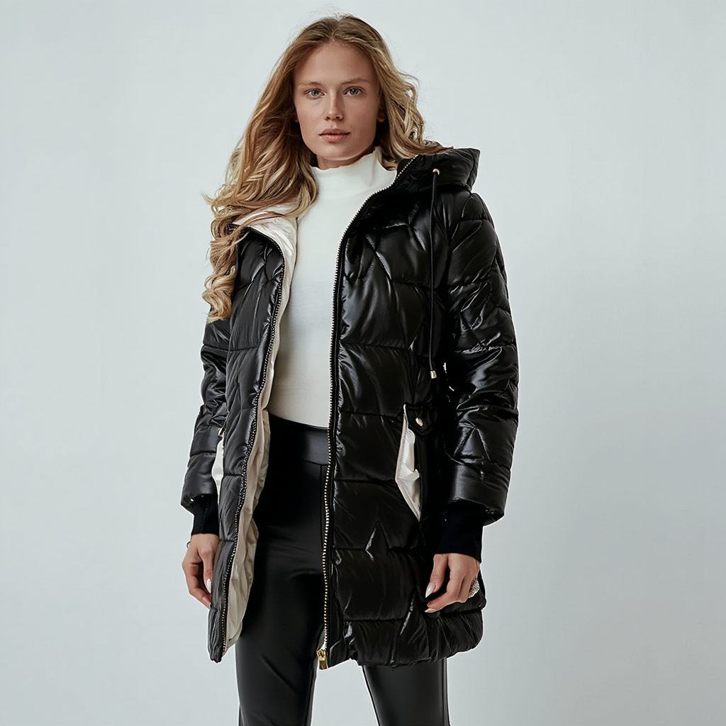 Elegant Puffer Vinterjakke til Kvinder | Polstret Jakke med Hætte og Lynlås