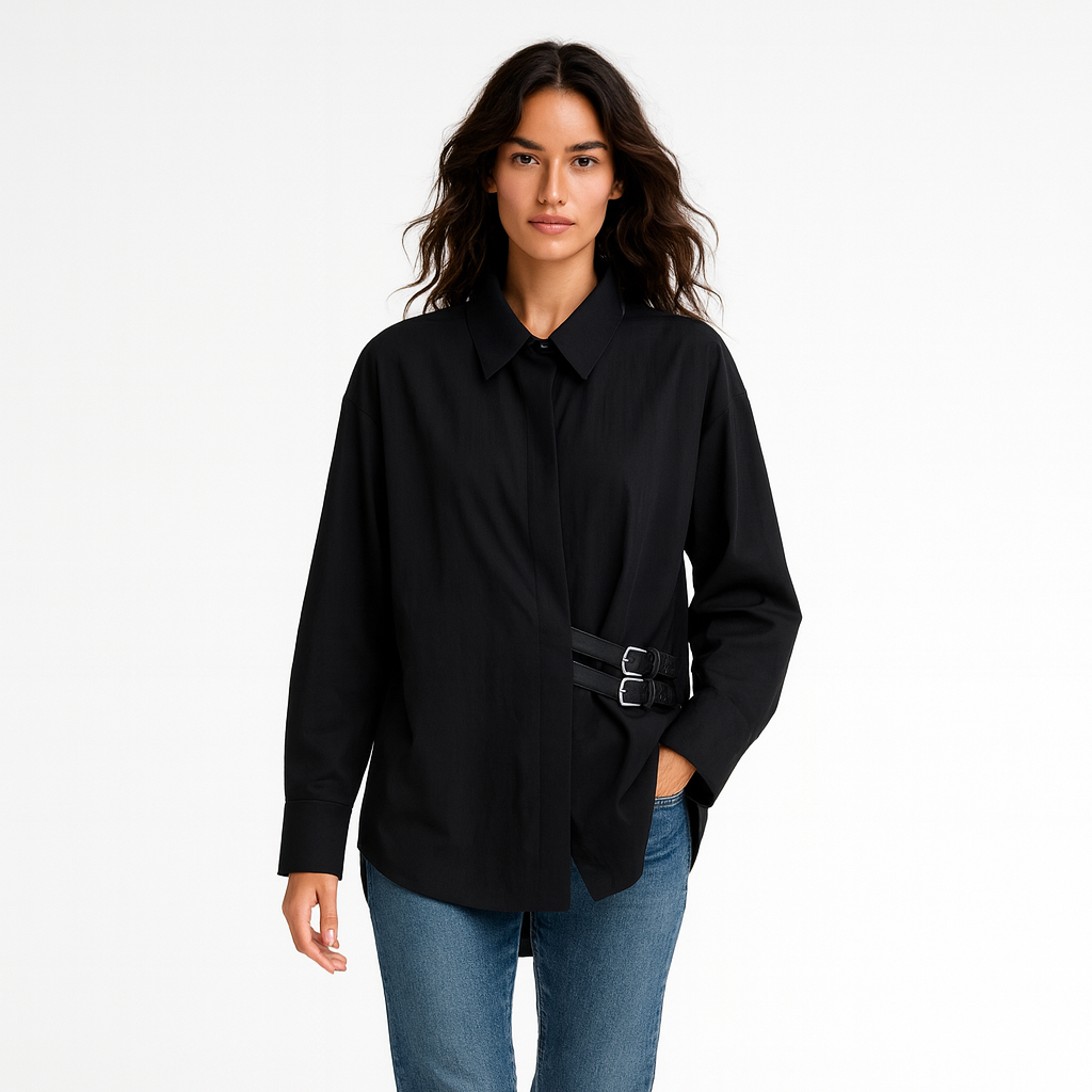 ✓ Bælte-detaljer i siden: Tilføjer struktur, form og visuel kant, så skjorten får et unikt og flatterende udtryk.