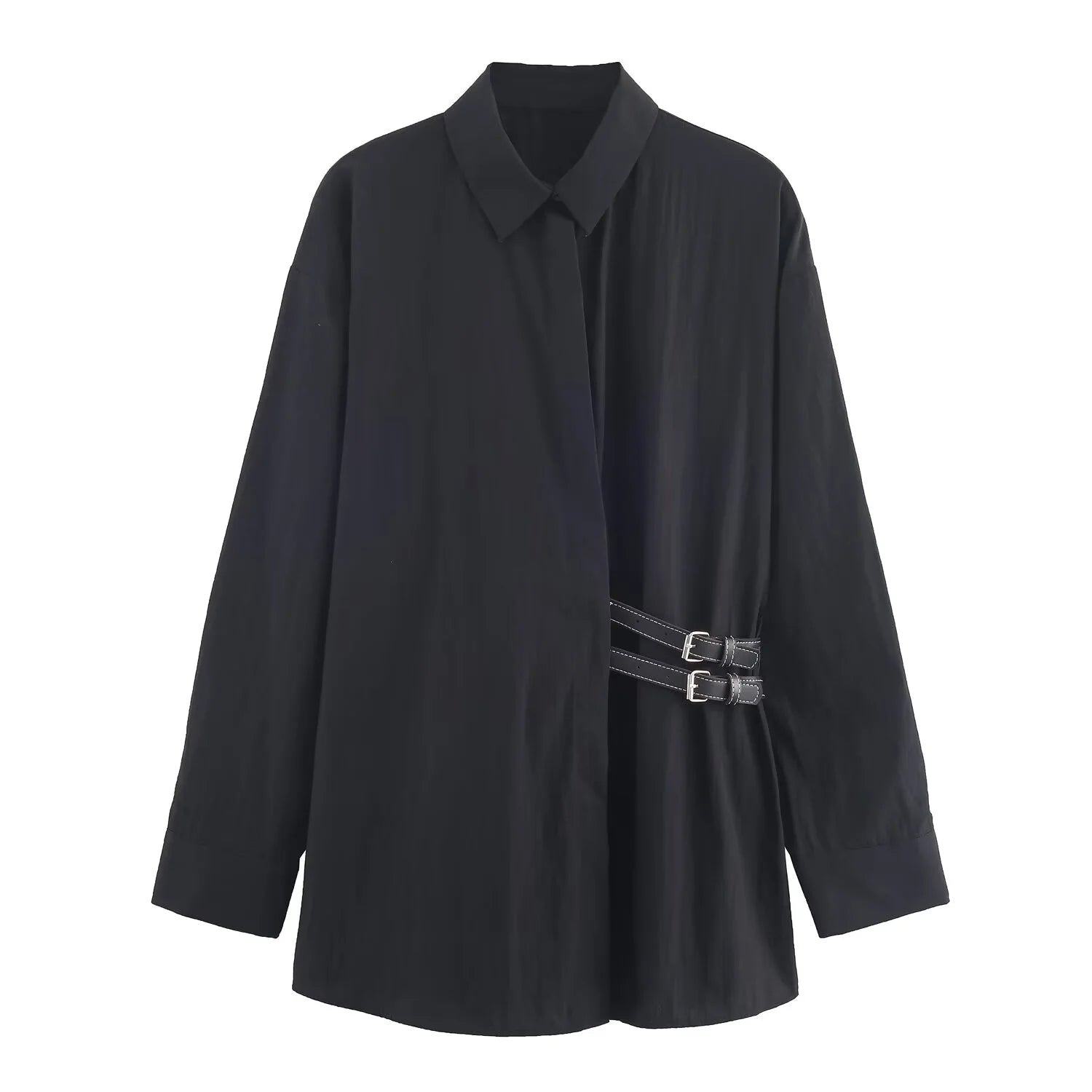 Elegant skjorte med moderne bælte-detaljer og minimalistisk silhuet
