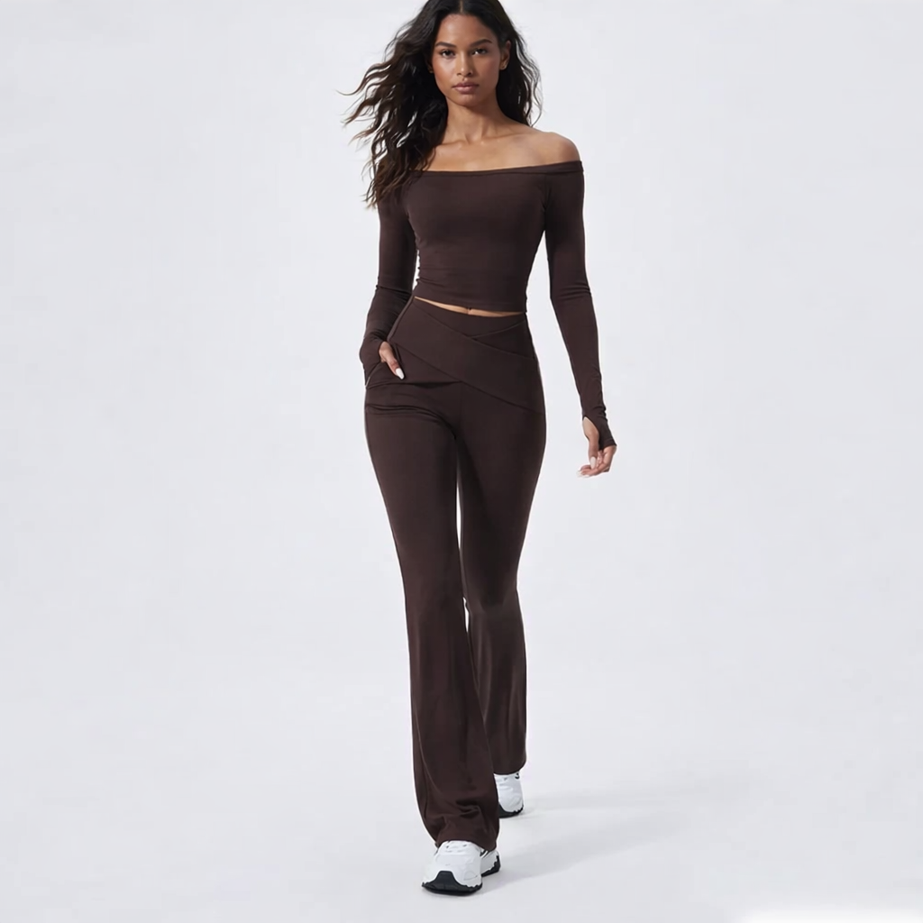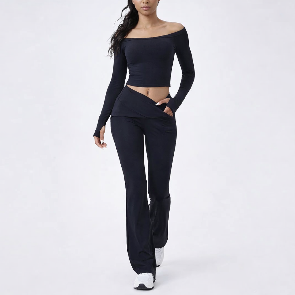 Elegant yoga- og træningssæt til kvinder med langærmet top og flatterende bukser