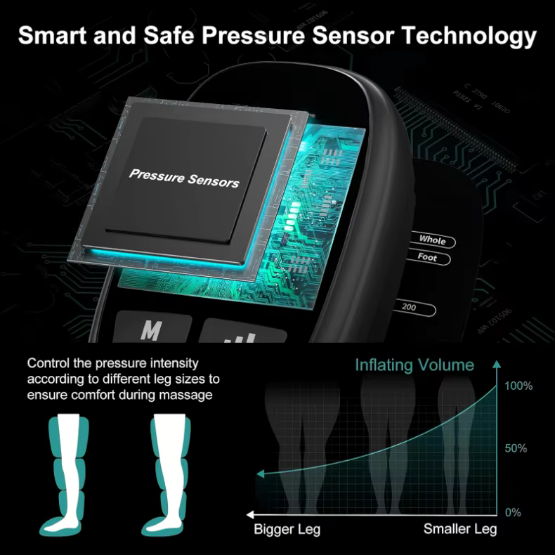 ✓ Lufttryksbaseret massage: Det sekventielle tryk stimulerer musklerne og giver en behagelig, rytmisk massageoplevelse.