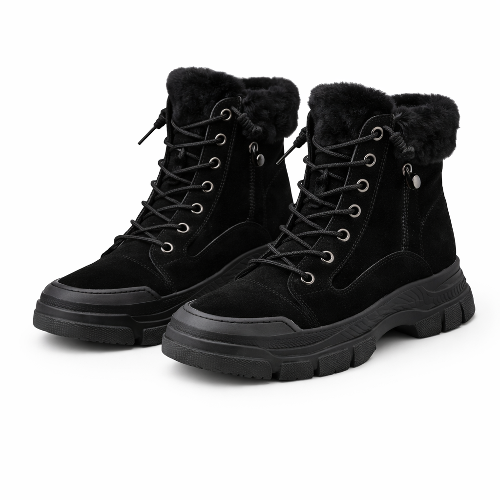 Disse ankelstøvler kombinerer et råt, moderne udtryk med høj komfort og stabilitet. Den robuste opbygning og den bløde inderside gør dem velegnede til daglig brug, hvor både støtte og varme spiller en central rolle.