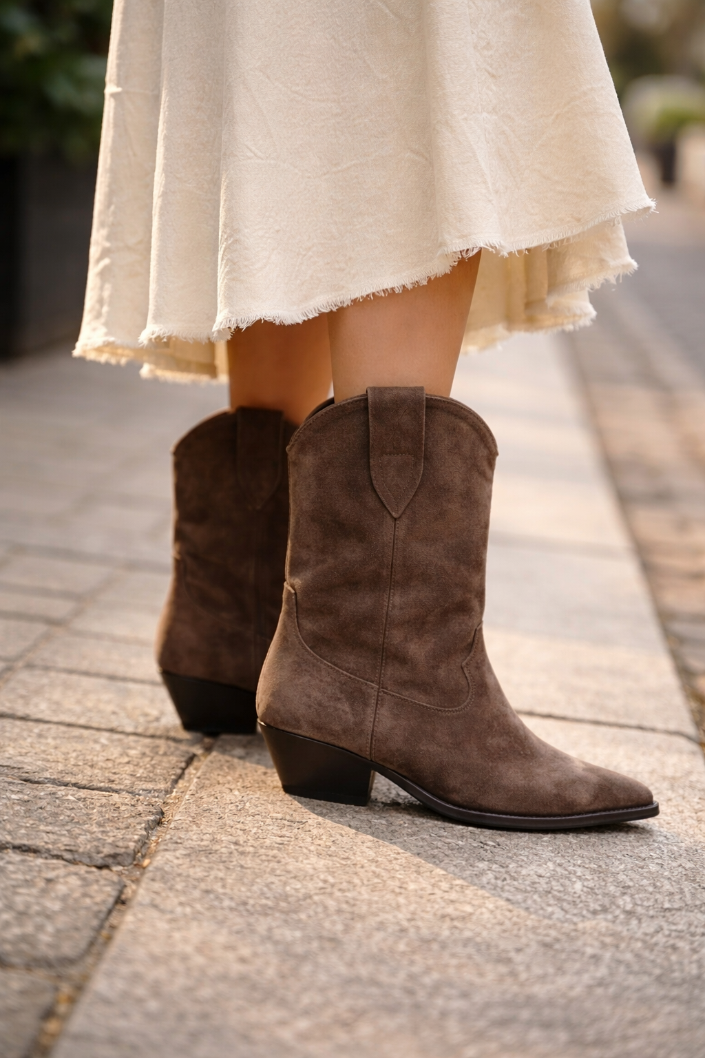 Disse ankelboots kombinerer et tidløst, vestligt inspireret udtryk med en elegant og anvendelig silhuet. Den spidse snude og den stabile hæl skaber et raffineret look, der fungerer perfekt til både hverdagsbrug og mere gennemførte outfits.