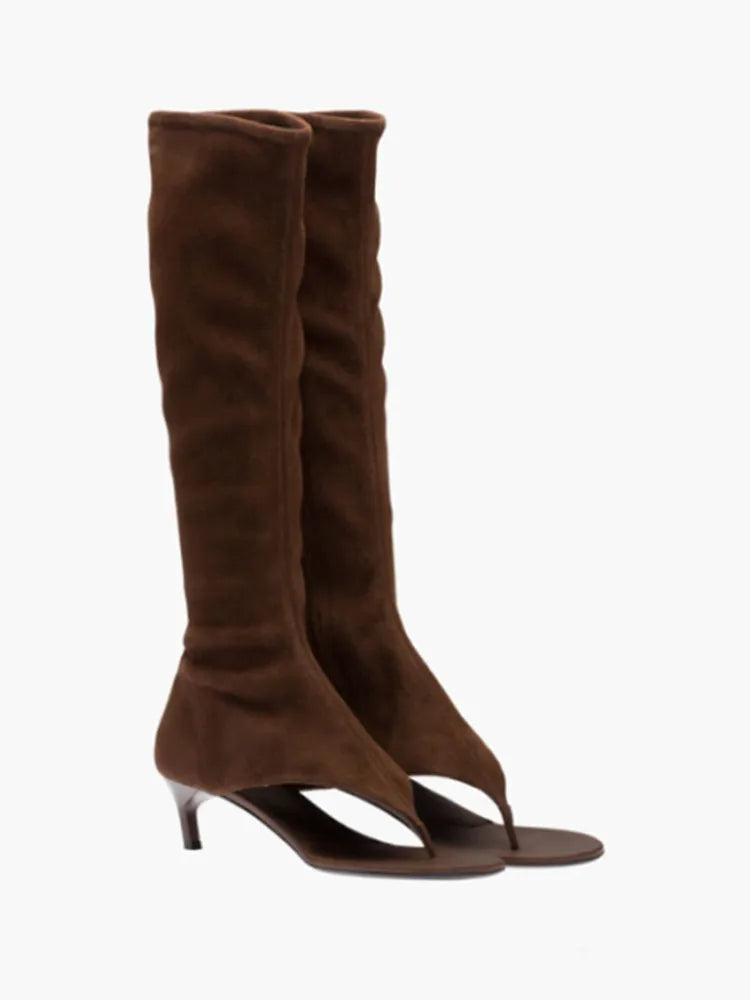 Knælange Dameboots Med Split-tå Og Slank Hæl