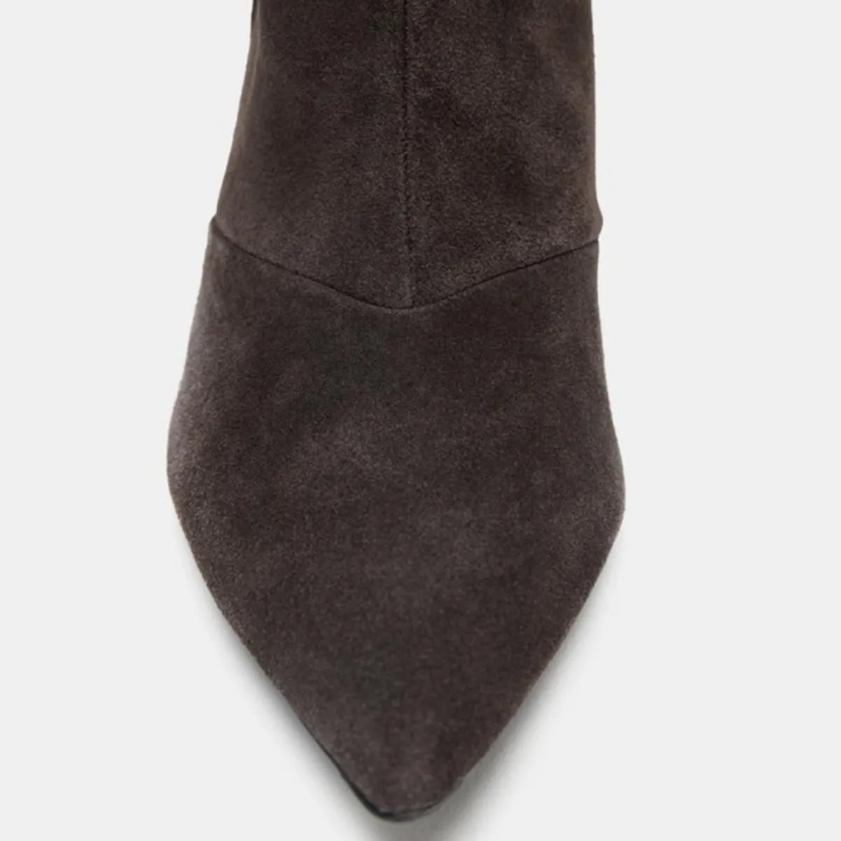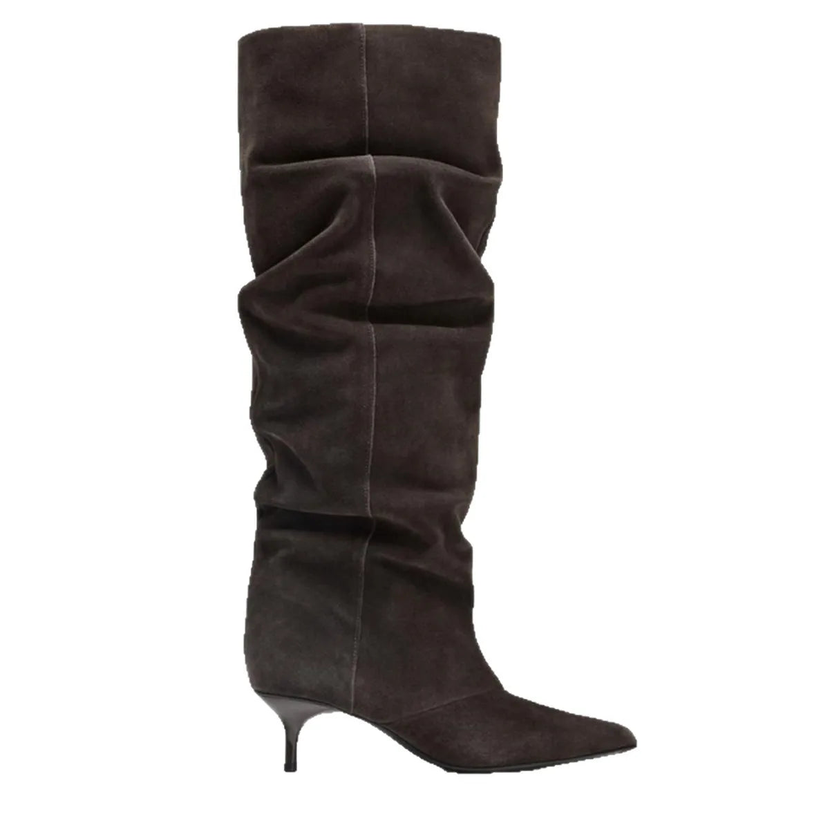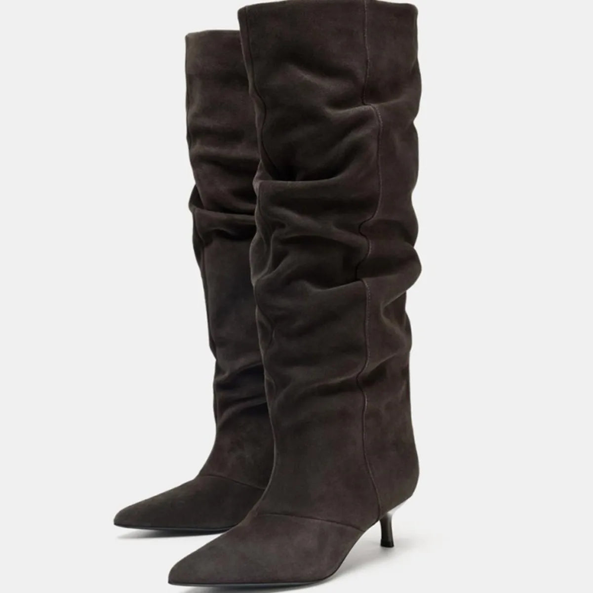 Opgrader dit efterårslook med disse elegante knelange støvler i blød ruskindseffekt. Den afslappede silhuet og den spidse snude skaber et tidløst design, der kombinerer komfort med sofistikeret stil.