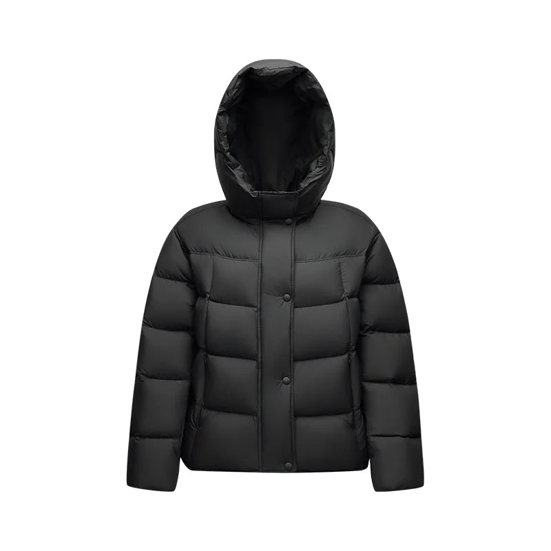 Denne kortere dunjakke kombinerer praktisk funktionalitet med et minimalistisk og elegant udtryk, der gør den ideel til både hverdagsbrug og aktive dage. Den polstrede struktur giver en omsluttende, behagelig varme, mens den rene silhuet og den beskyttende hætte skaber et harmonisk og moderne look. En stilfuld og funktionel jakke, der tilfører garderoben et let og luksuriøst element.