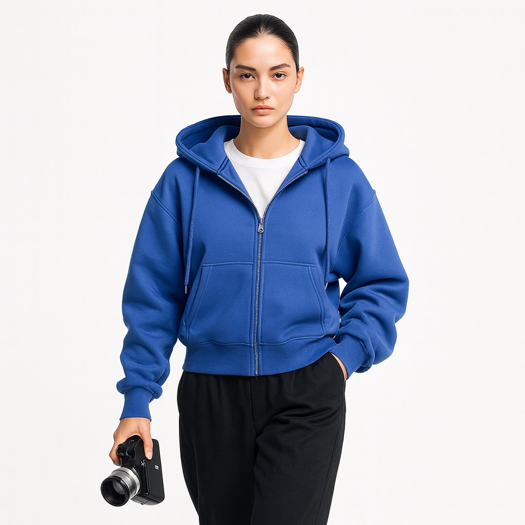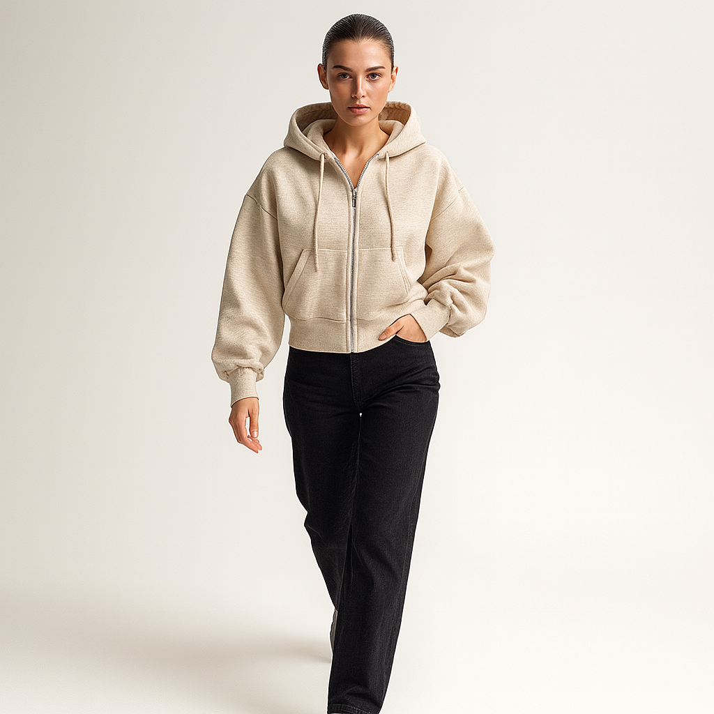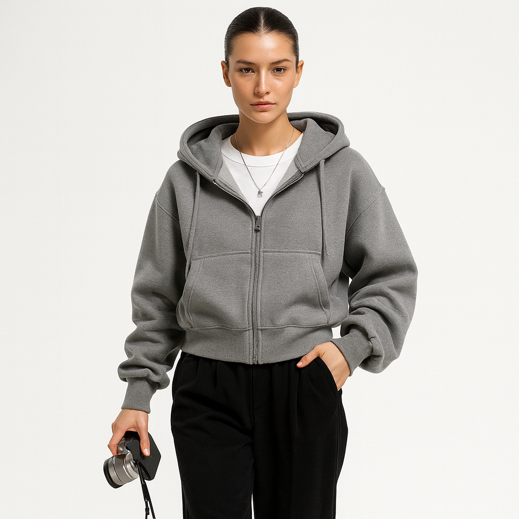 Kort hættetrøje til kvinder | Lynlås | Afslappet pasform