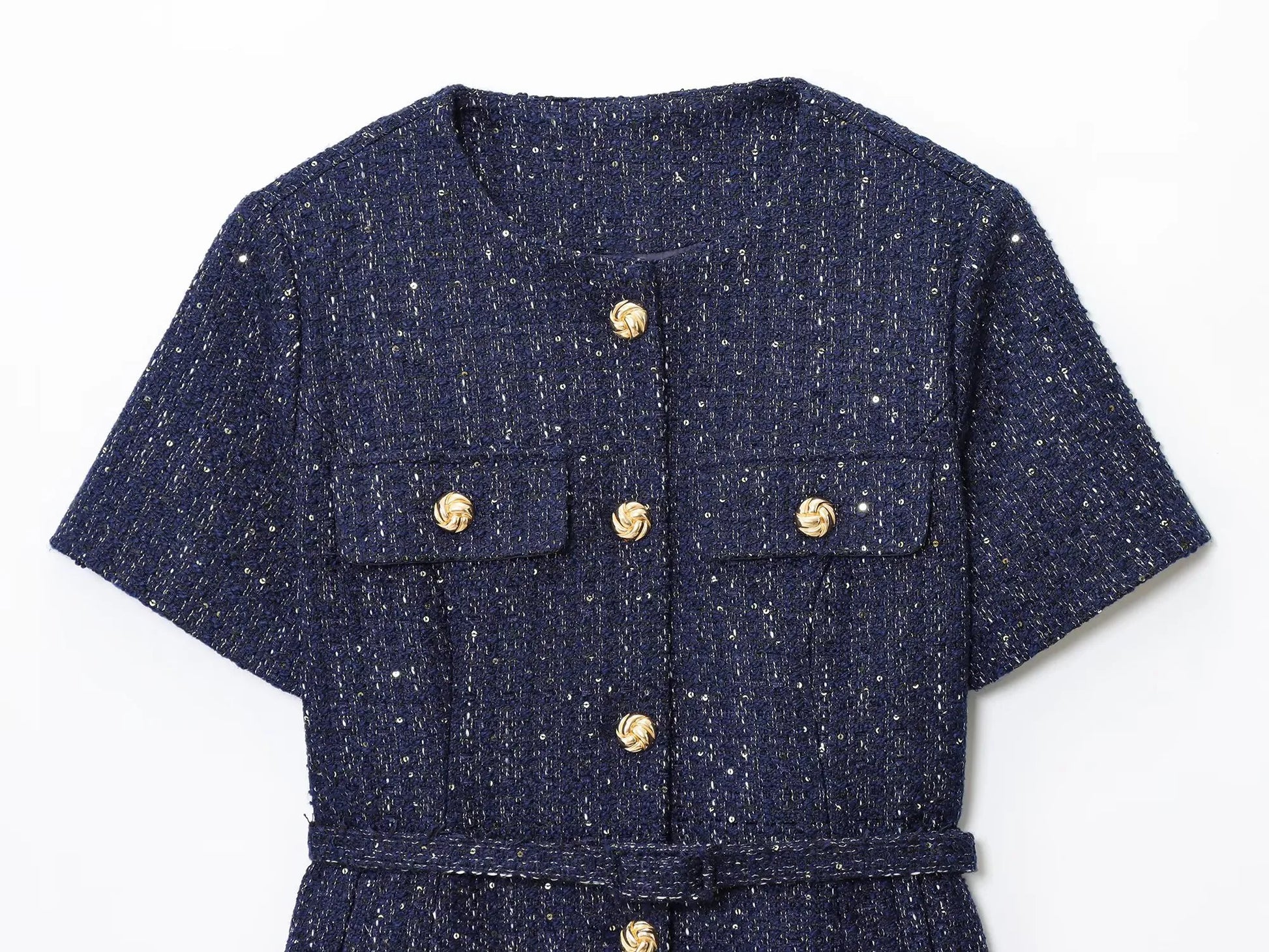 Kort jakke til kvinder | Med bælte og guldknapper | Elegant design med korte ærmer