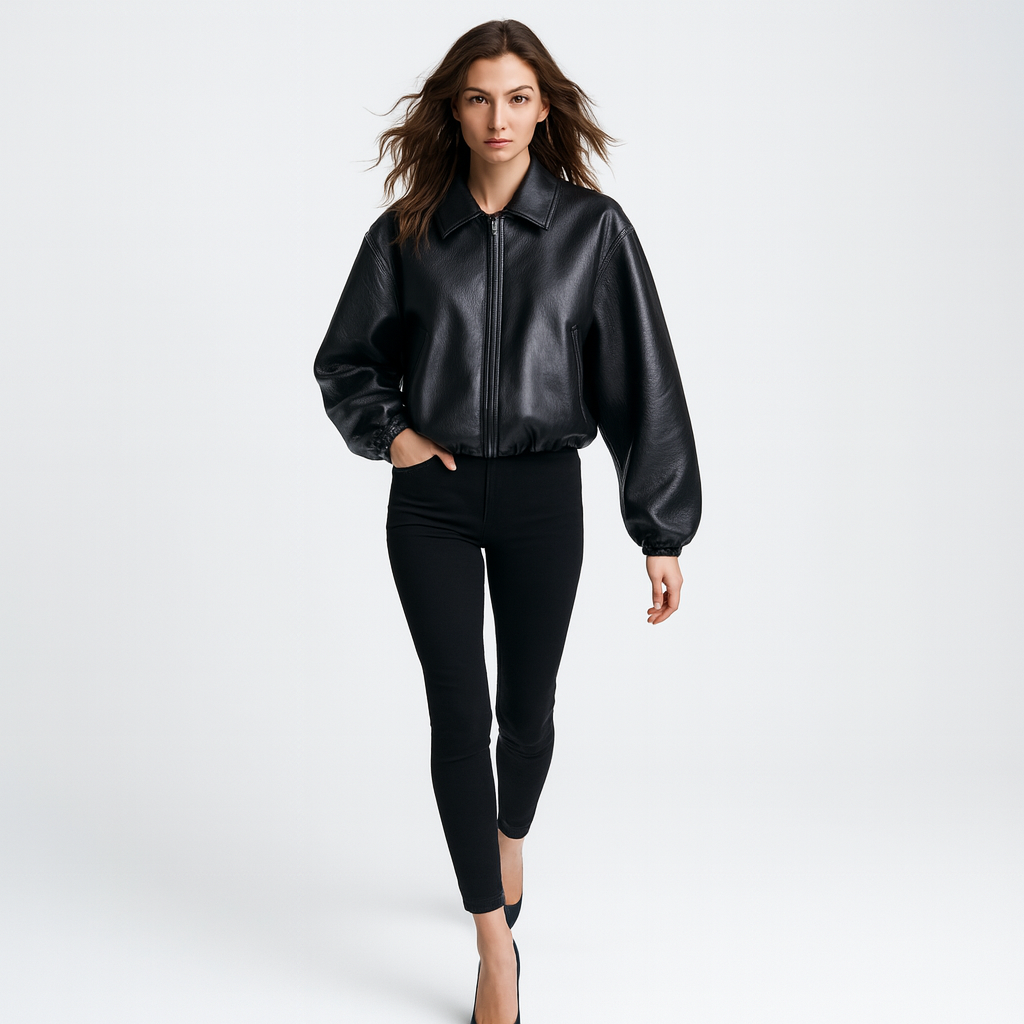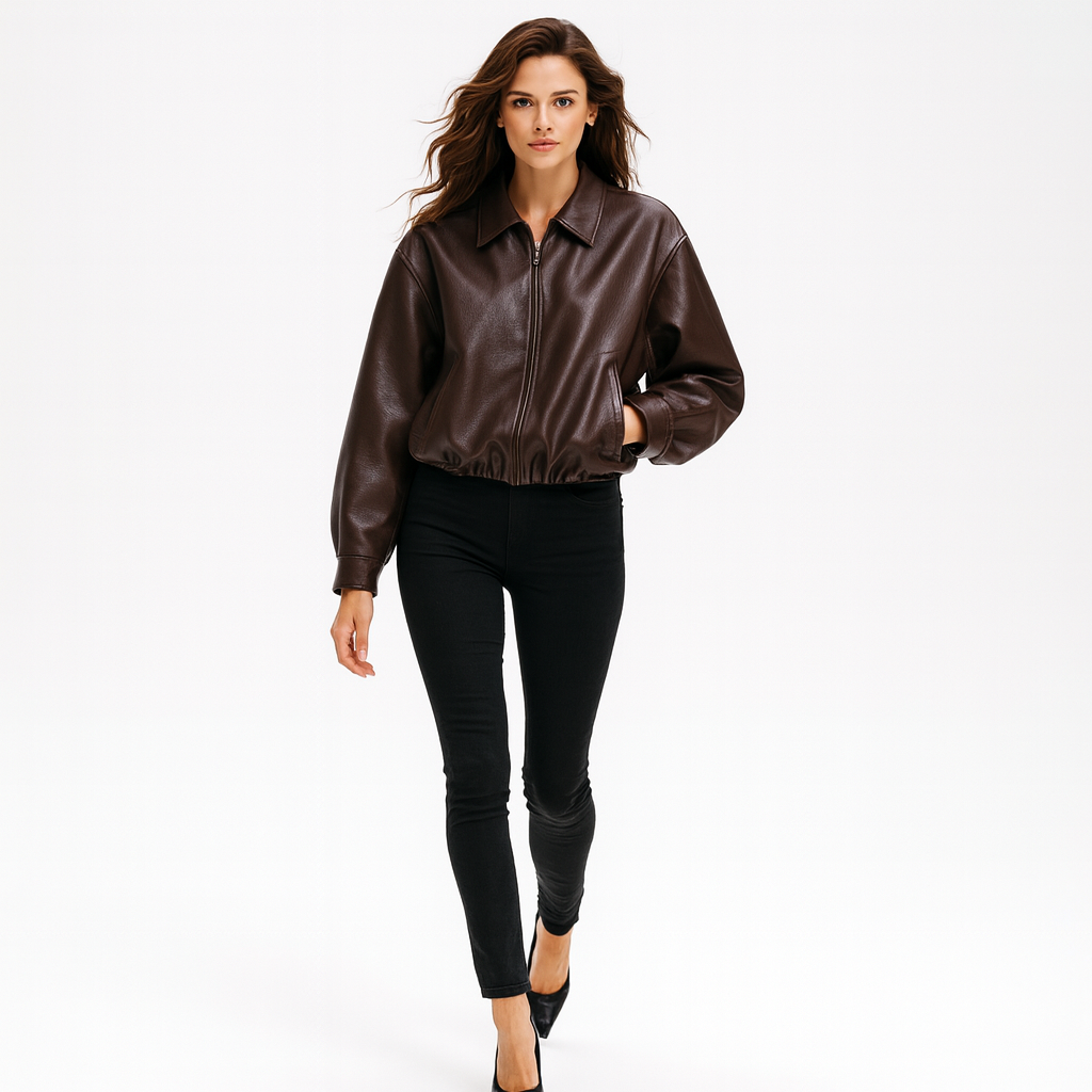 Kort Jakke til Kvinder | Med Lynlås og Krave | Moderne Imitationslæder til Efterår og Forår