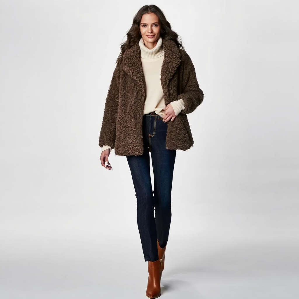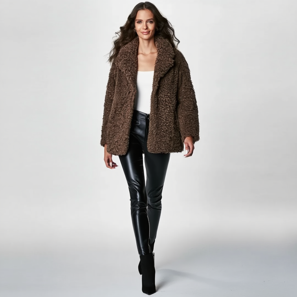 Kort teddyjakke til kvinder | Blød imitert pels | Løs pasform og klassisk revers