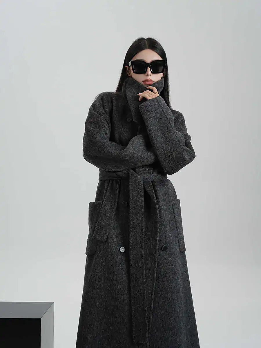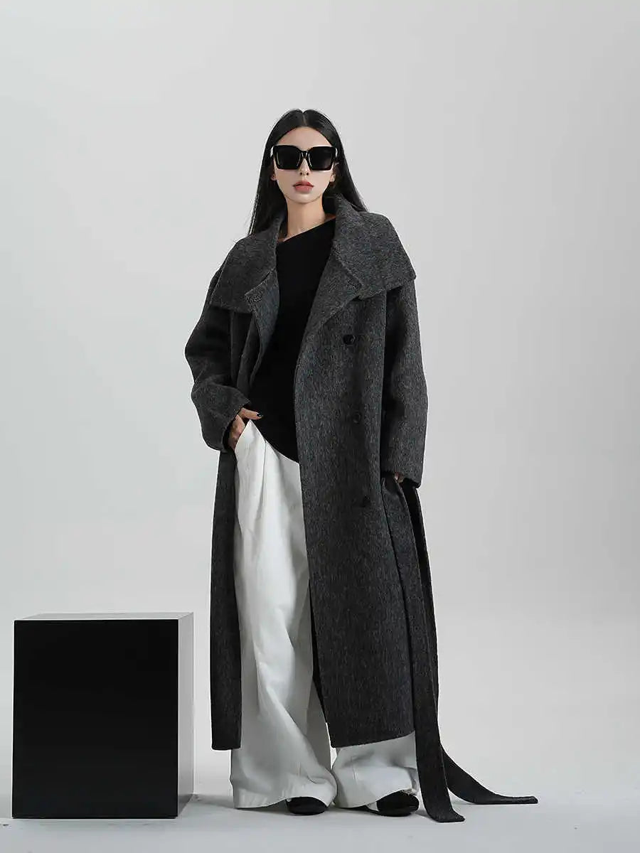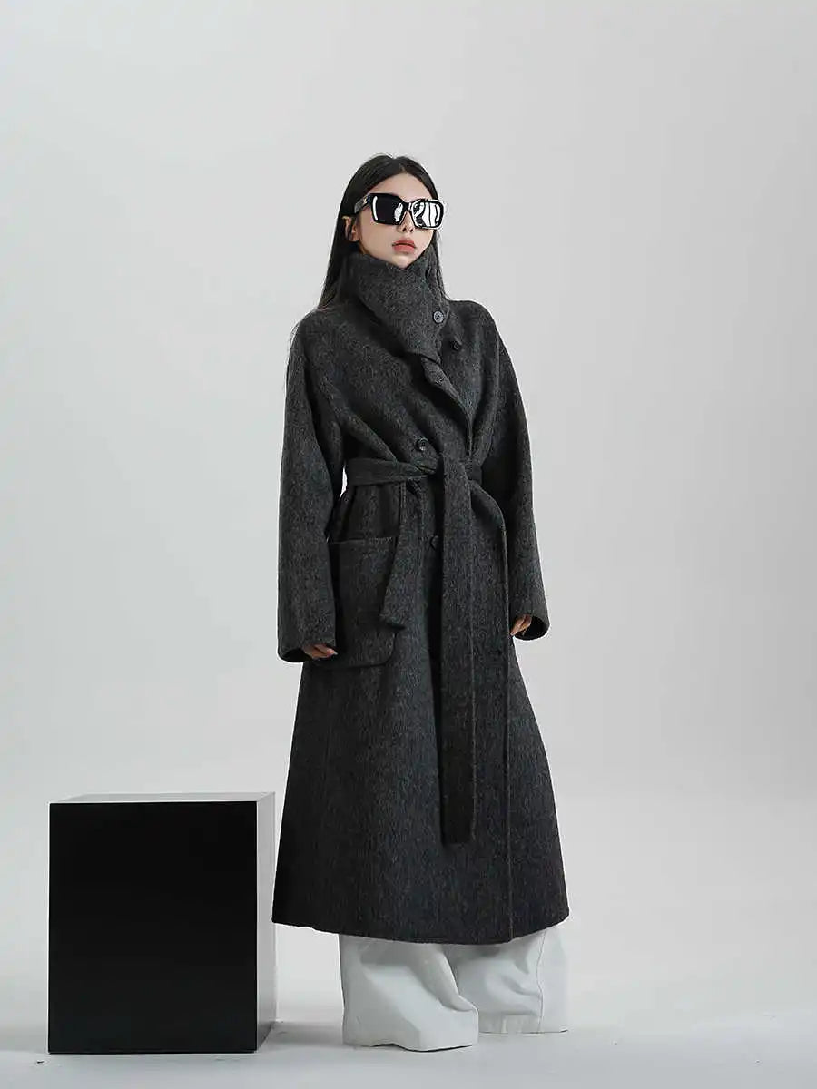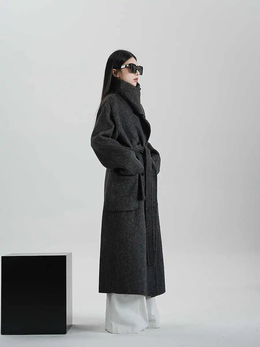 Kvinder | Lang Frakke | Elegant Silhuet med Løs Pasform og Bælte