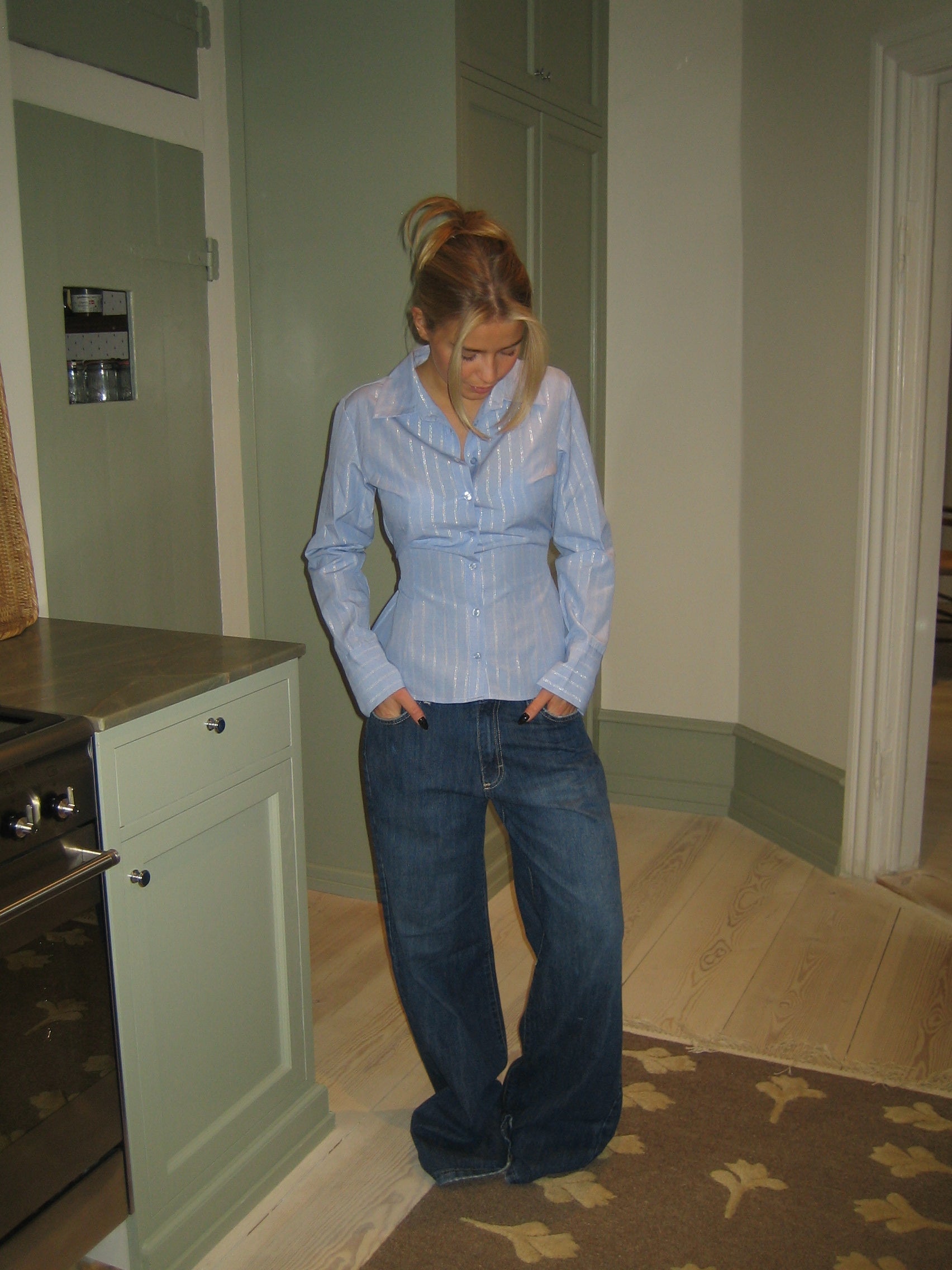 Denne elegante skjorte kombinerer klassisk skræddersyning med et moderne, feminint twist. Den slanke pasform og det let strukturerede stof skaber et sofistikeret udtryk, perfekt til både kontor og hverdagsbrug.