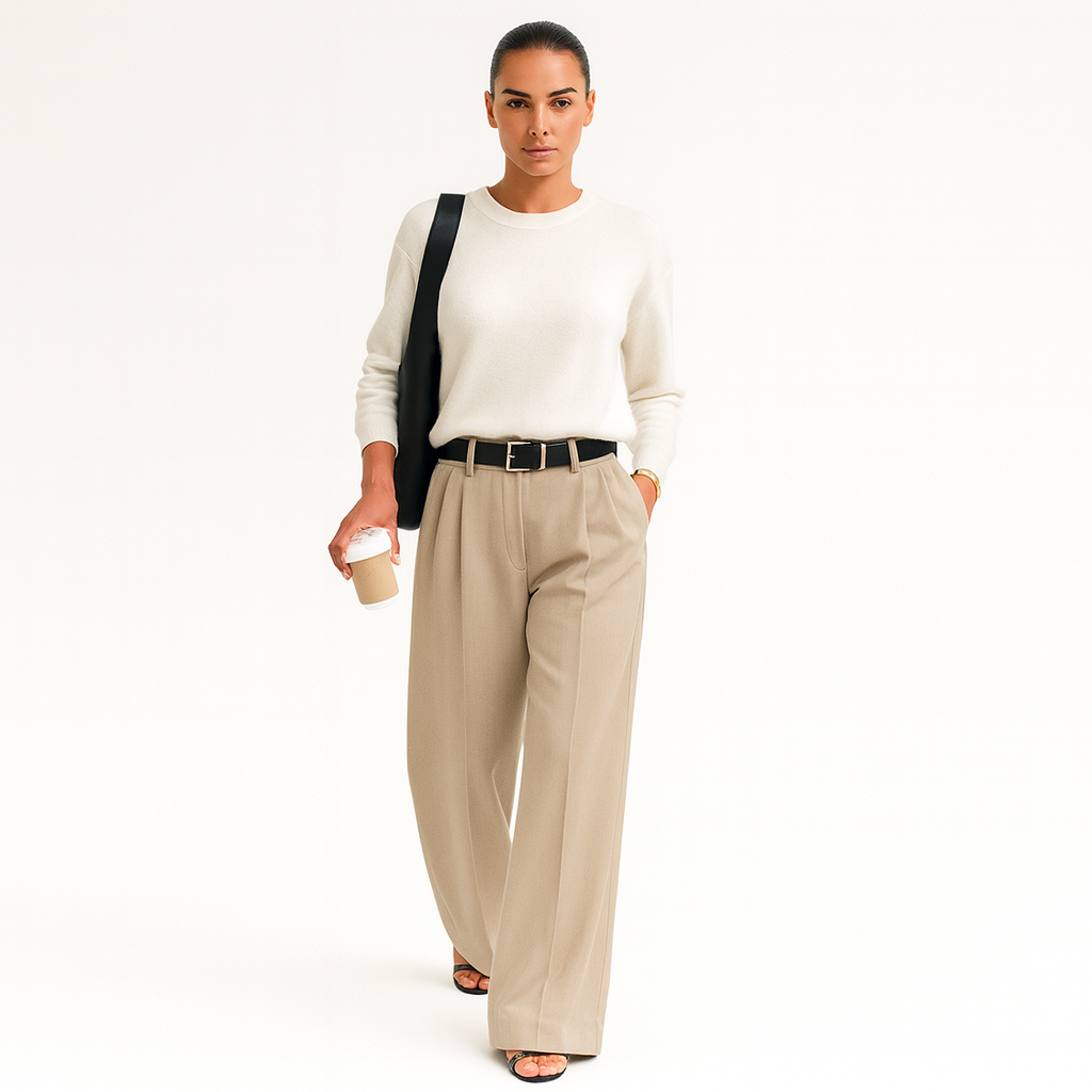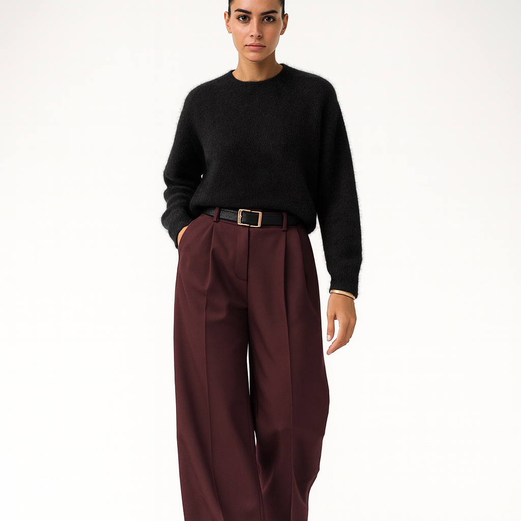 Oplev den perfekte balance mellem komfort og elegance med disse stilfulde brede bukser til moderne kvinder. Fremstillet i luksuriøst, let materiale, der føles blødt mod huden og falder smukt, giver disse bukser et poleret og feminint udtryk – ideelle til både arbejde, middag eller fritid.