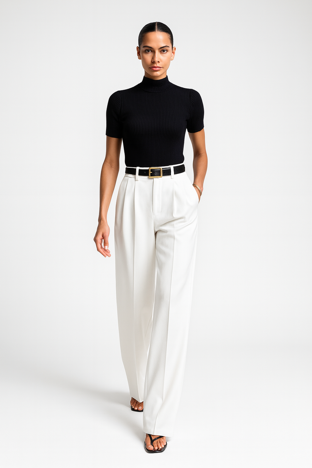 ✓ Flatterende pasform: Vide ben og højtaljet design skaber en elegant silhuet.