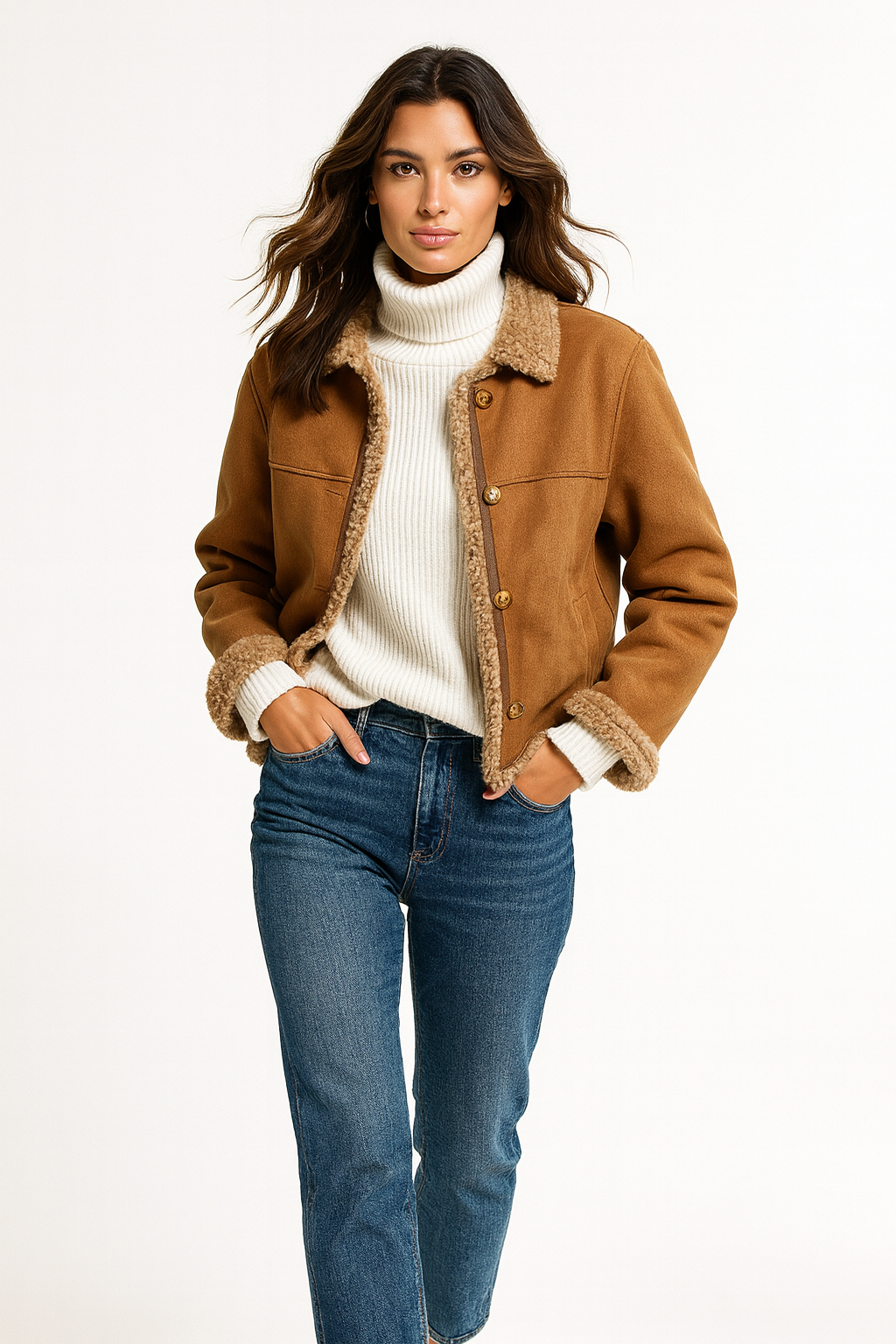 Oplev raffineret komfort med denne elegante jakke med blød pelskant. Den kombinerer et tidløst design med varme og struktur, hvilket gør den perfekt til kolde dage, hvor stil og funktion går hånd i hånd.