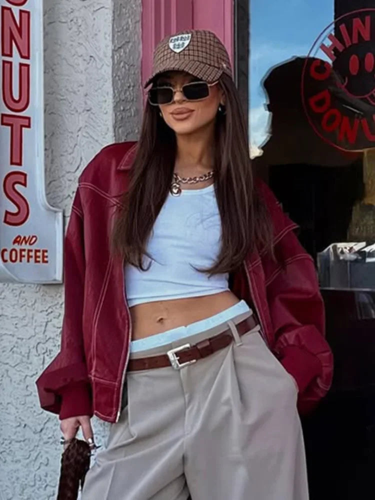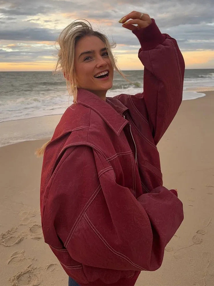 Kvinders Kort Jakke med Løs Pasform | Lynlås og Lommer | Moderne Street Style til Efterår