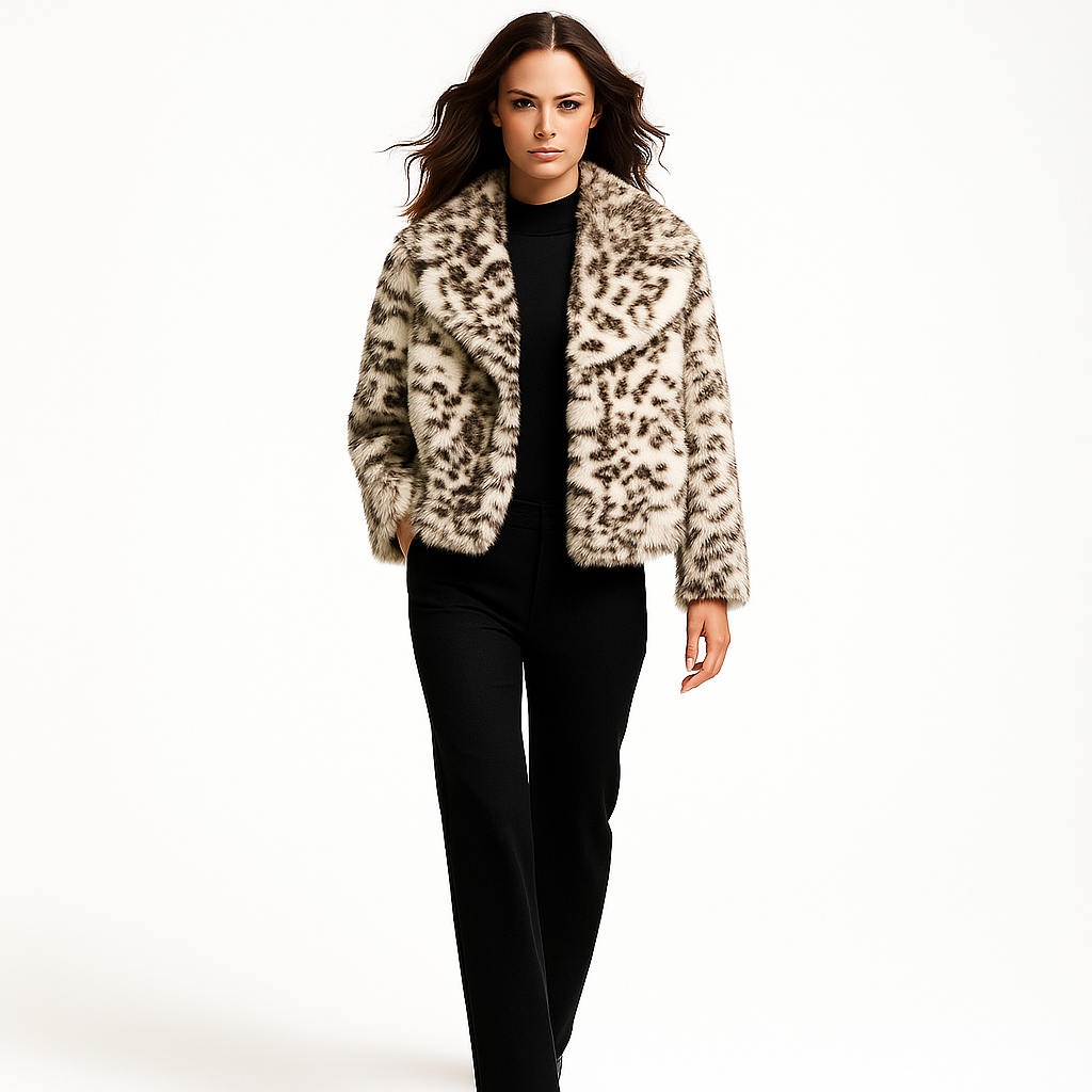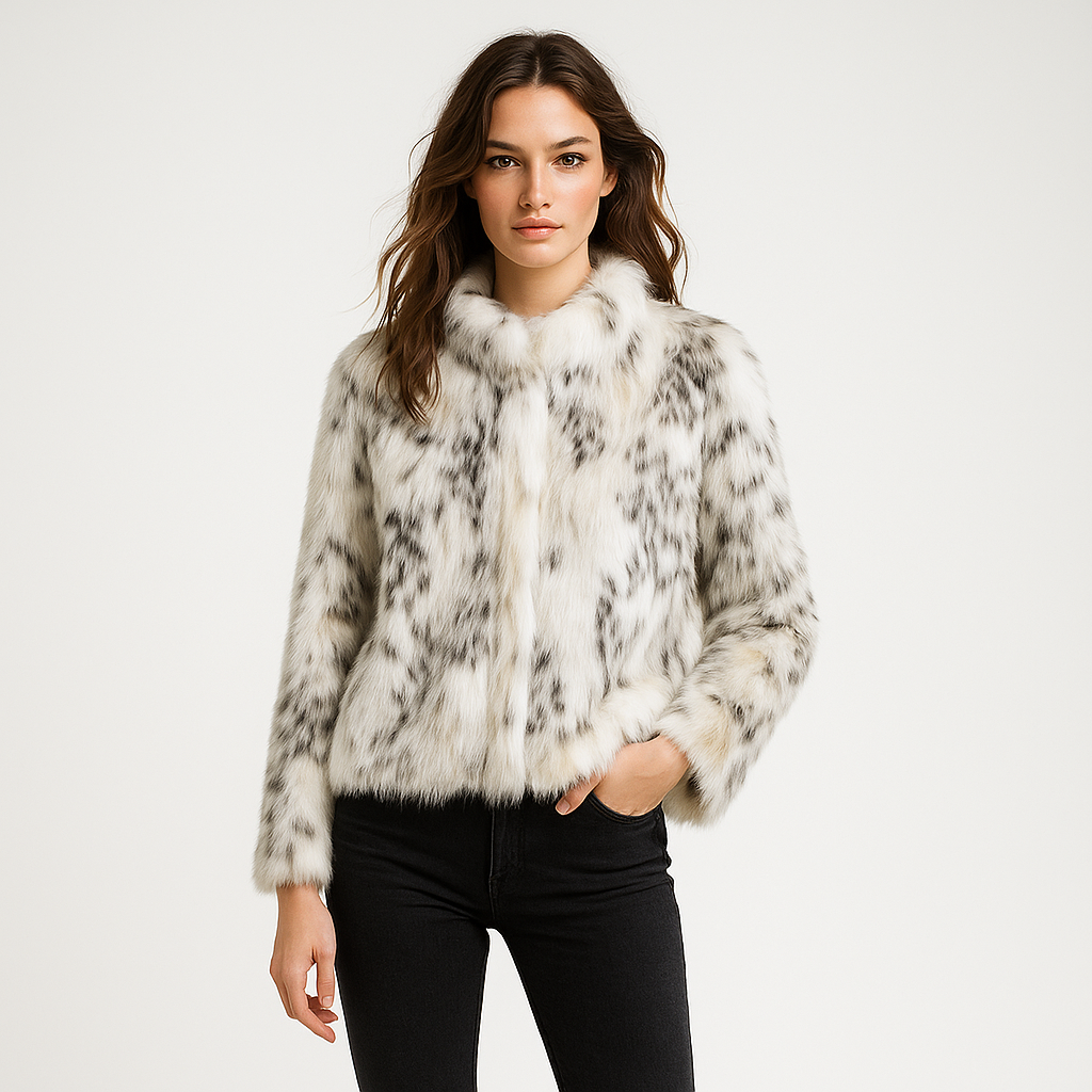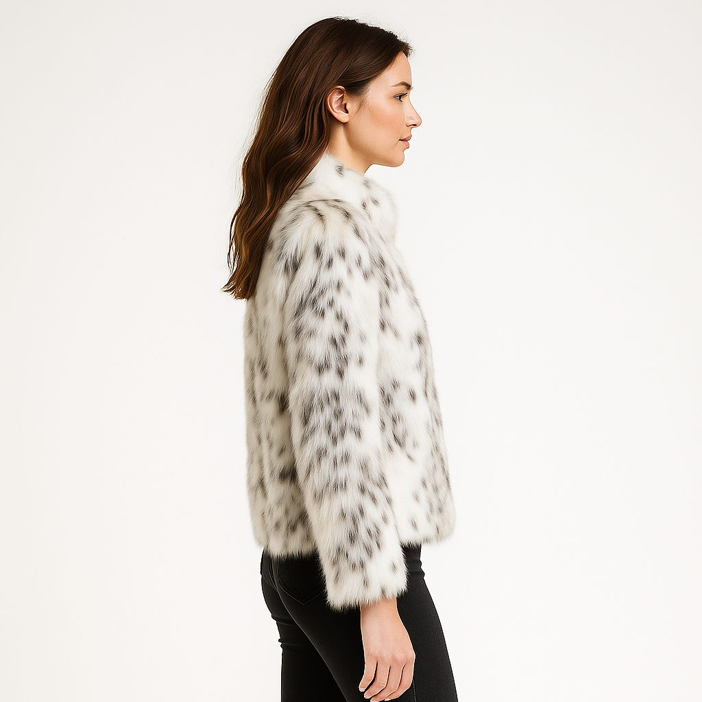 Kvinders Kort Pelsjakke i Imitationspels | Dyreprint | Varm og Eksklusiv til Efterår og Vinter