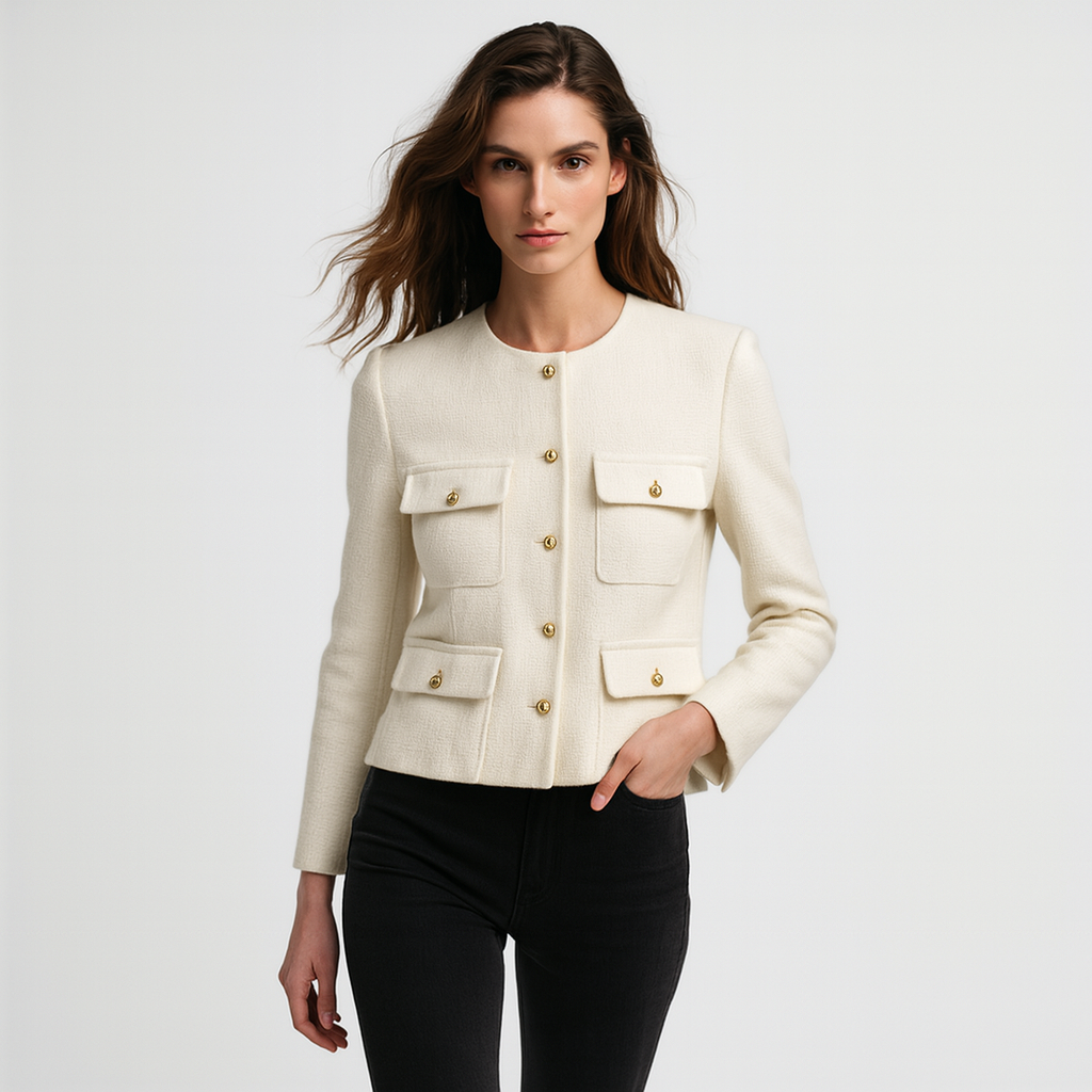Kvinders kort tweedjakke | Struktureret design | Klassiske lommer & knapper